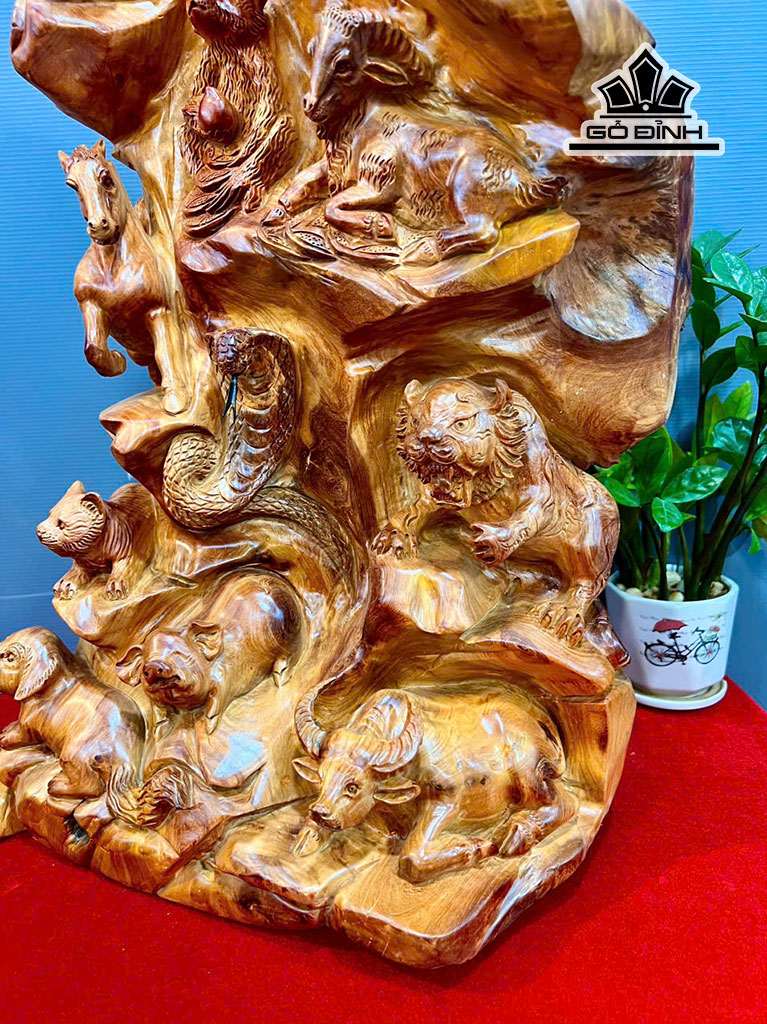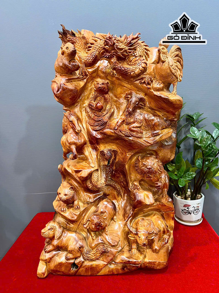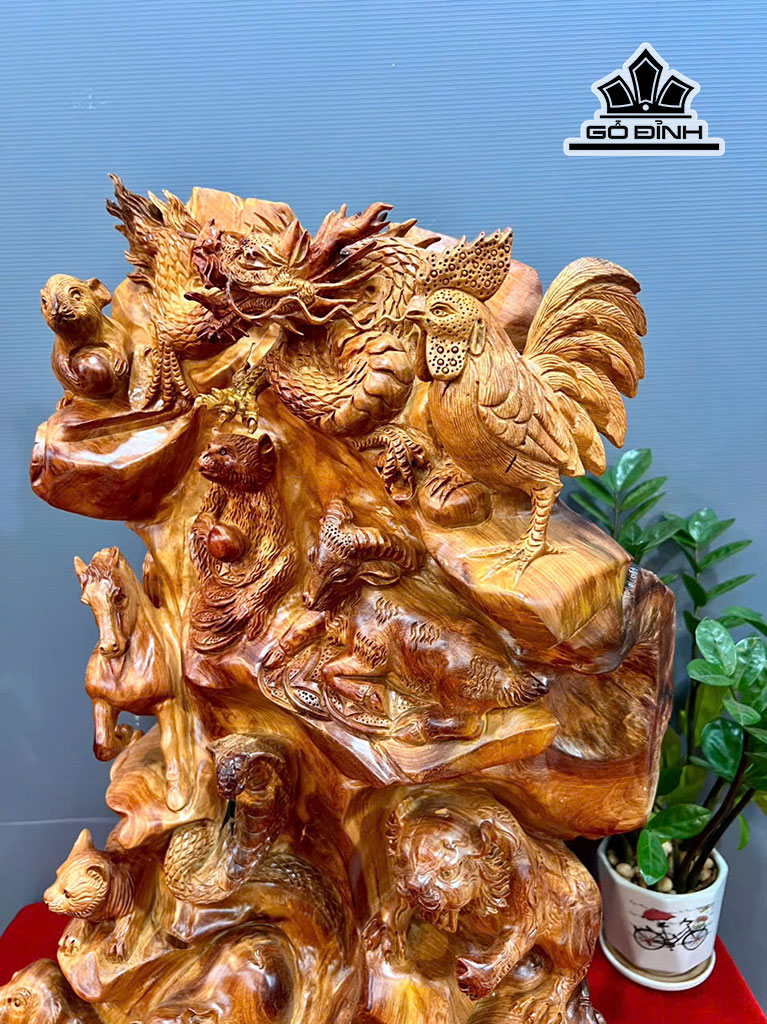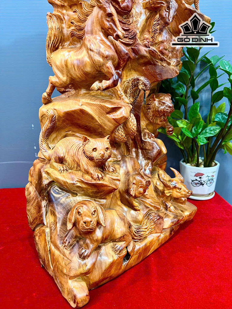 Bộ 12 Con Giáp Gỗ Hương Cao 65 Ngang 40 Sâu 20 (cm)