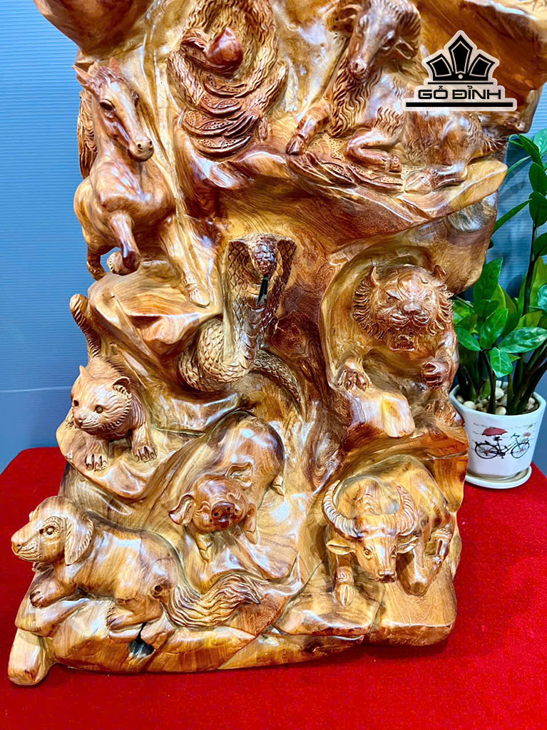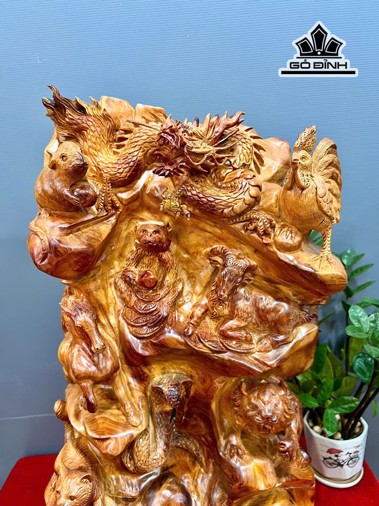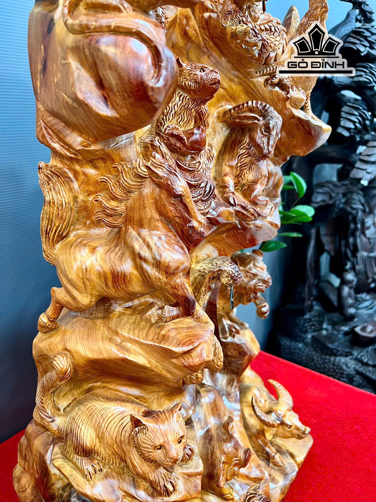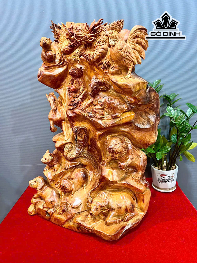 Bộ 12 Con Giáp Gỗ Hương Cao 65 Ngang 40 Sâu 20 (cm)