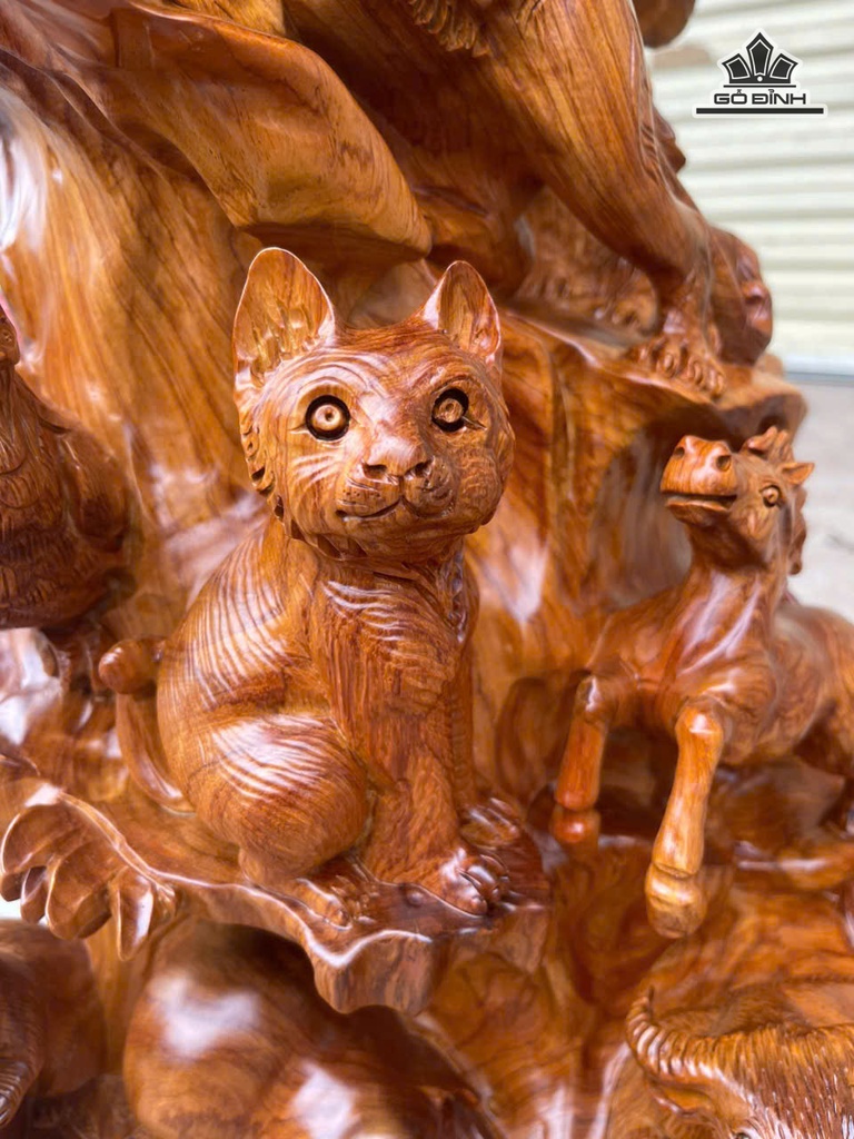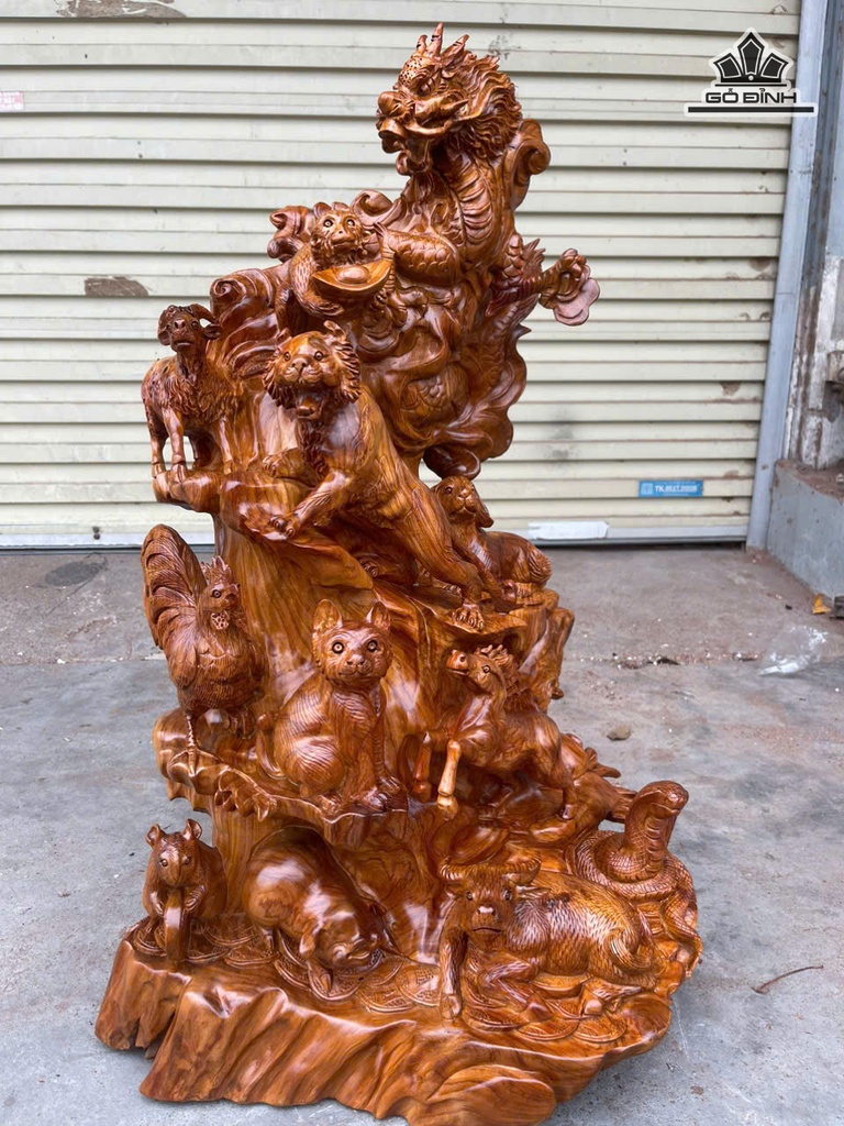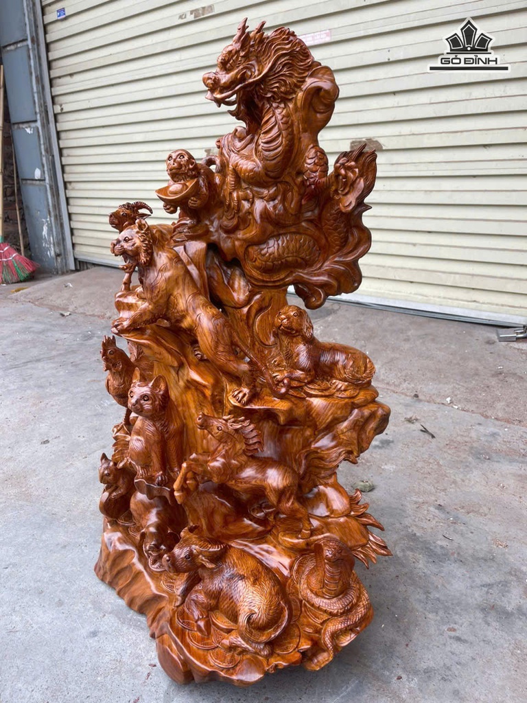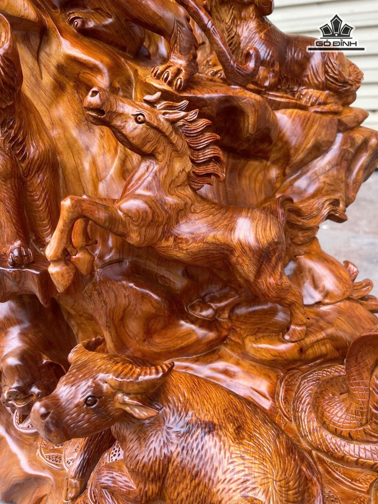 Bộ 12 Con Giáp Gỗ Hương Cao 78 Ngang 50 Sâu 35 (cm)