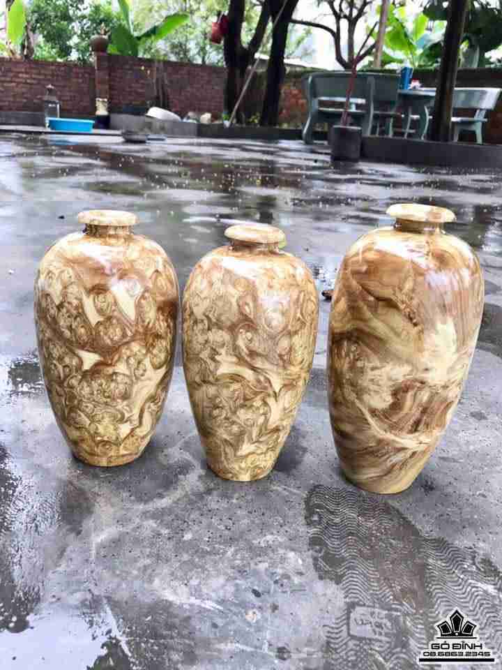 Bộ 3 chum phú quý gỗ nu nghiến 23x12, 23x11.5, 25x12