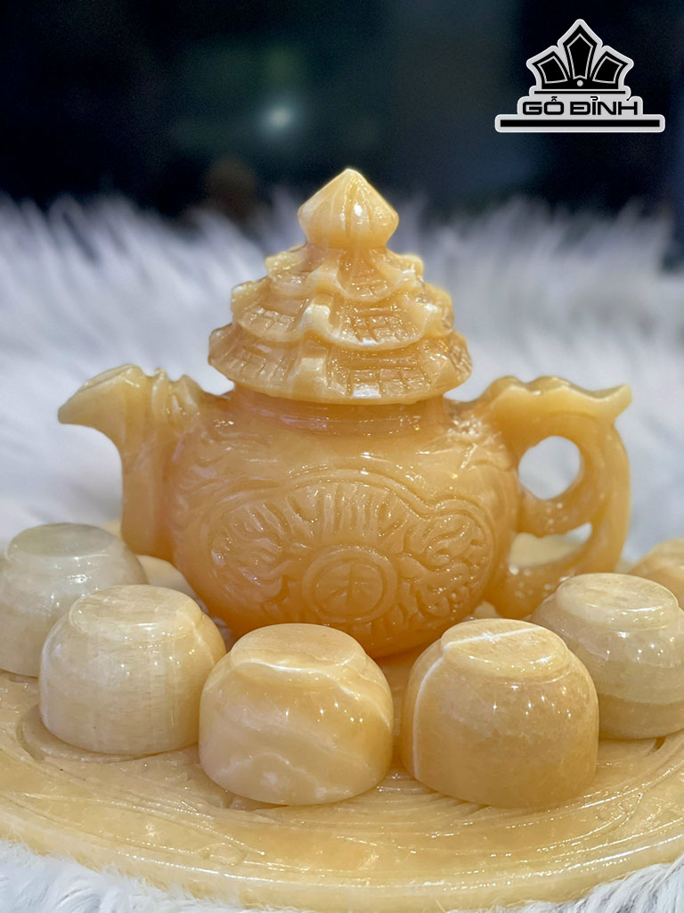 Bộ Ấm Chén Chạm Rồng Đá Ngọc Hoàng Long