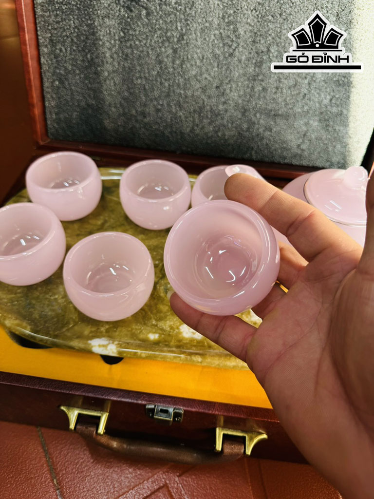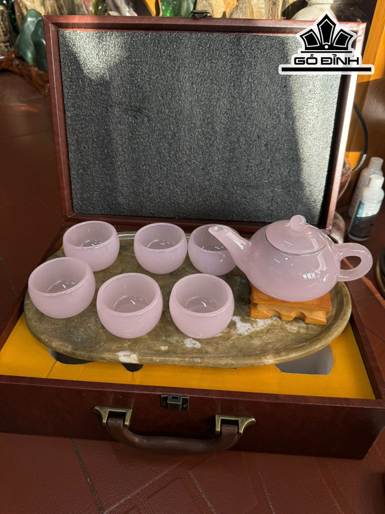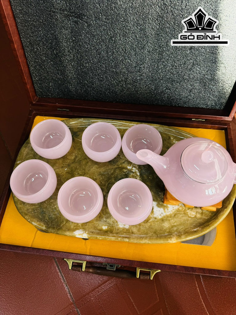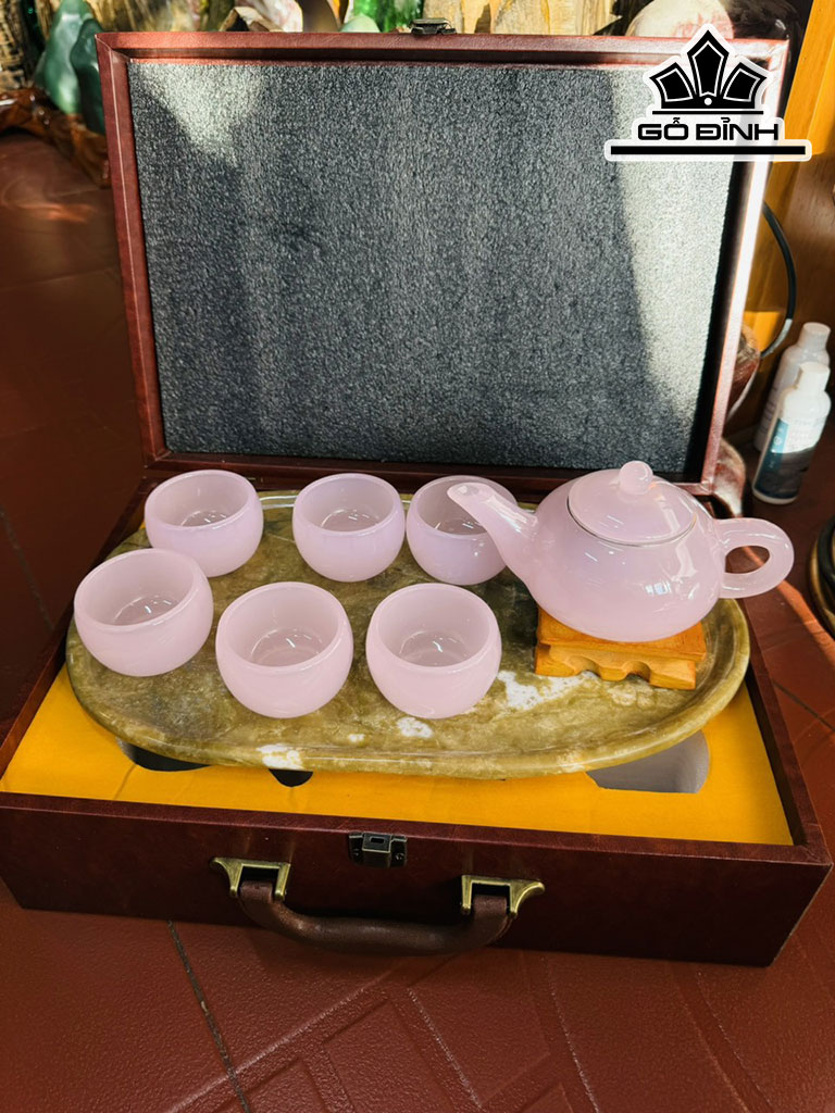 Bộ Ấm Chén Đá Bạch Ngọc Hồng Cao 37 Ngang 22 (cm)
