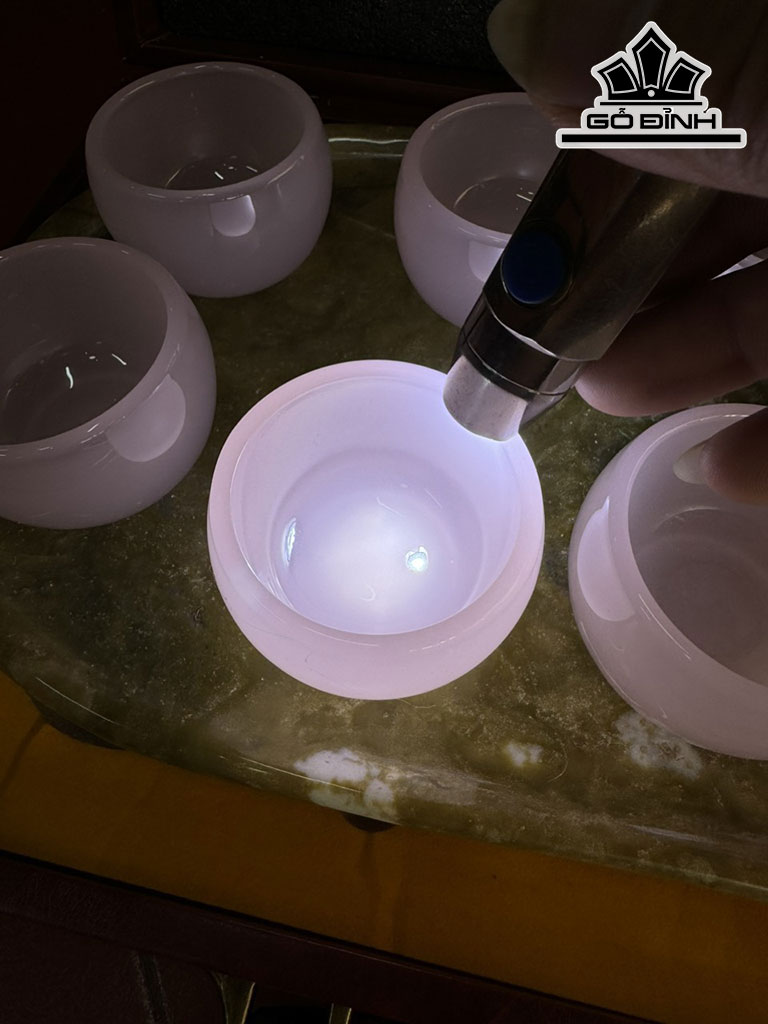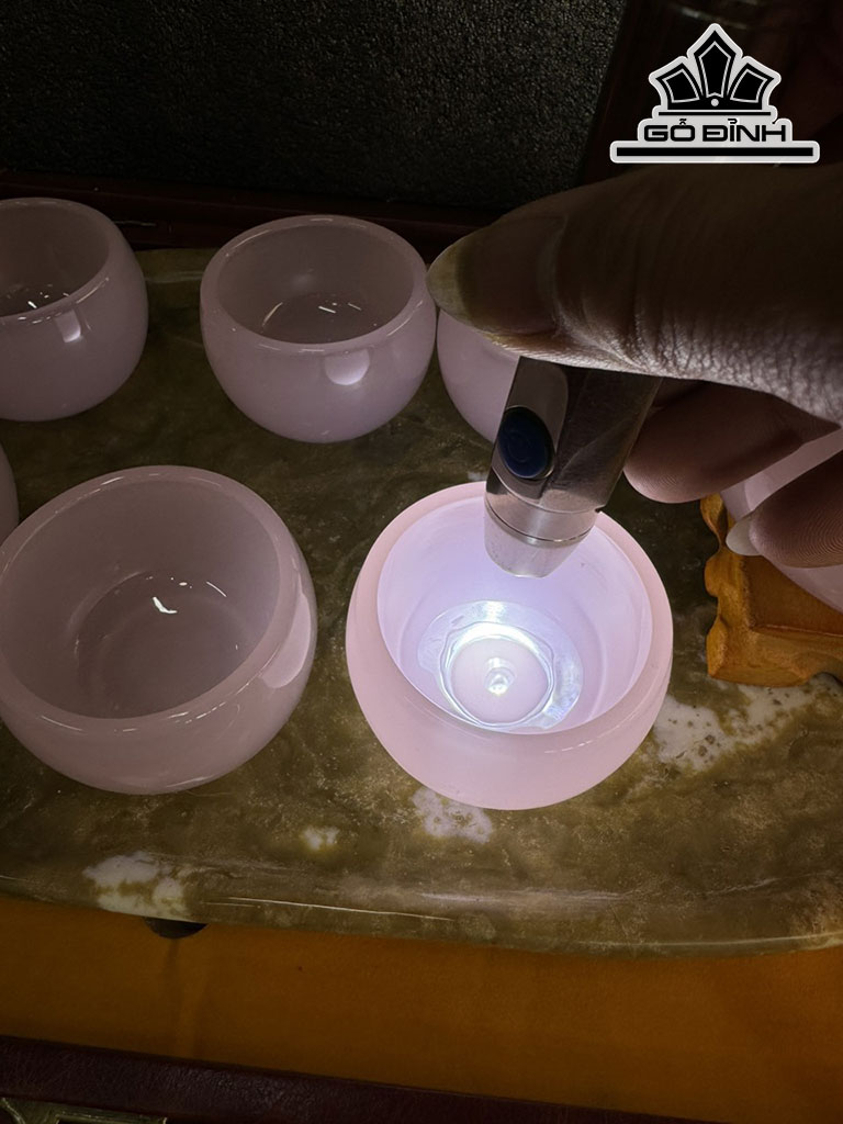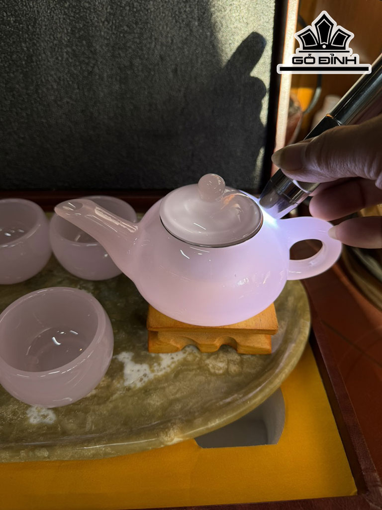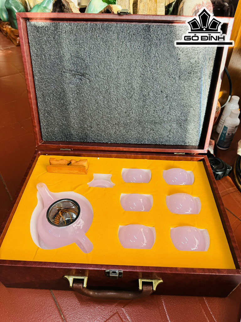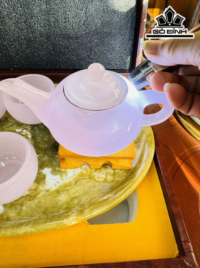 Bộ Ấm Chén Đá Bạch Ngọc Hồng Cao 37 Ngang 22 (cm)