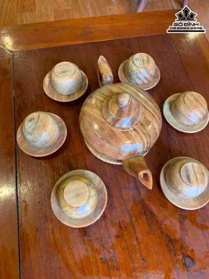 Bộ Ấm Chén Gỗ Huyết Long Đường Kính Ấm 12 Chén 5 (cm)