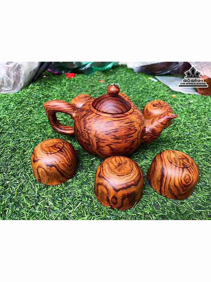 Bộ Ấm Chén Gỗ Sưa Bình Dài 18 Đường Kính 10 Cao 11 Chén Cao 4 Đường Kính 5.8 (cm)