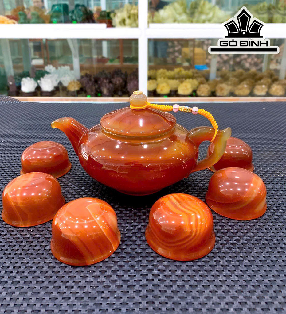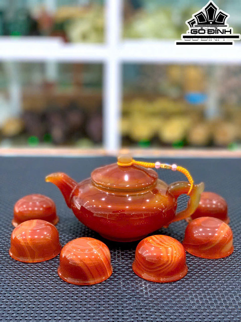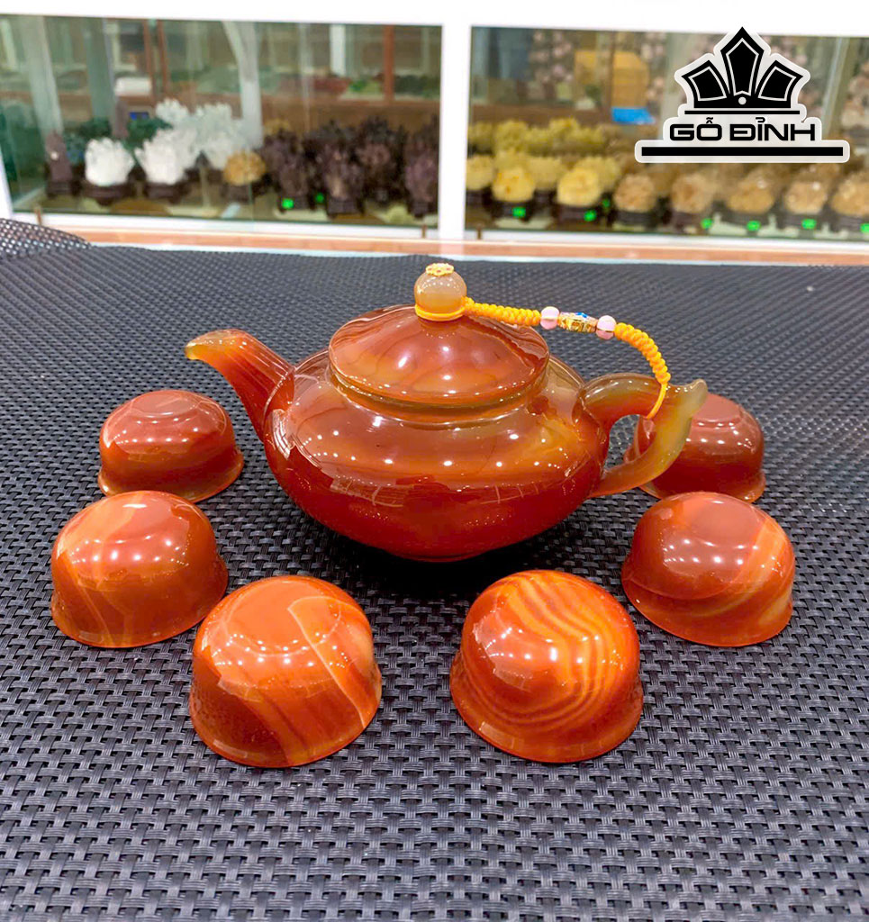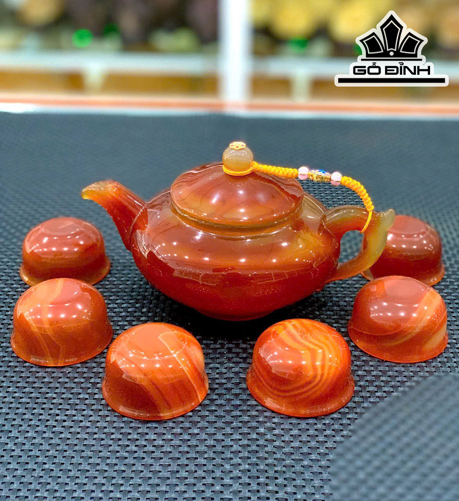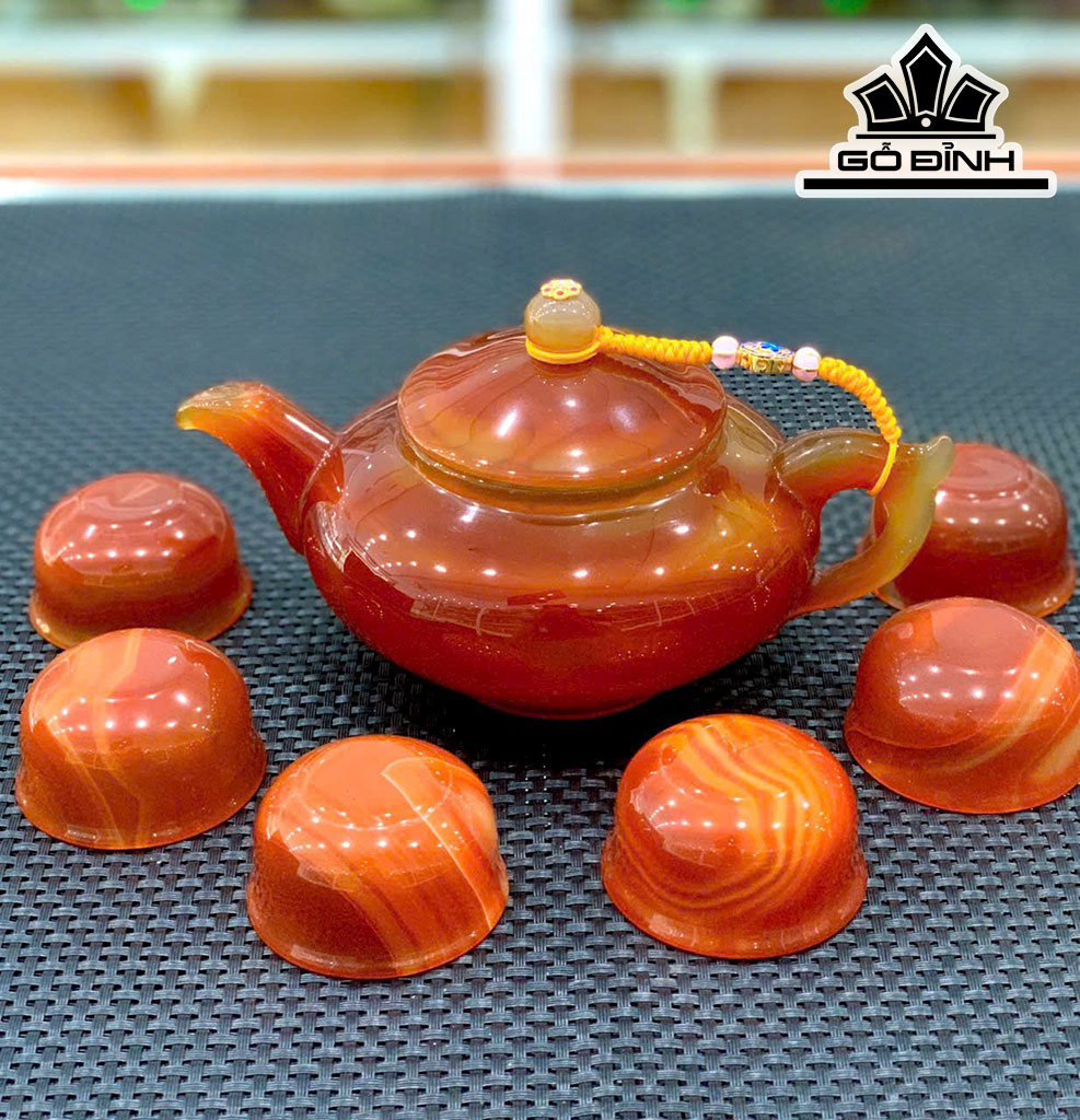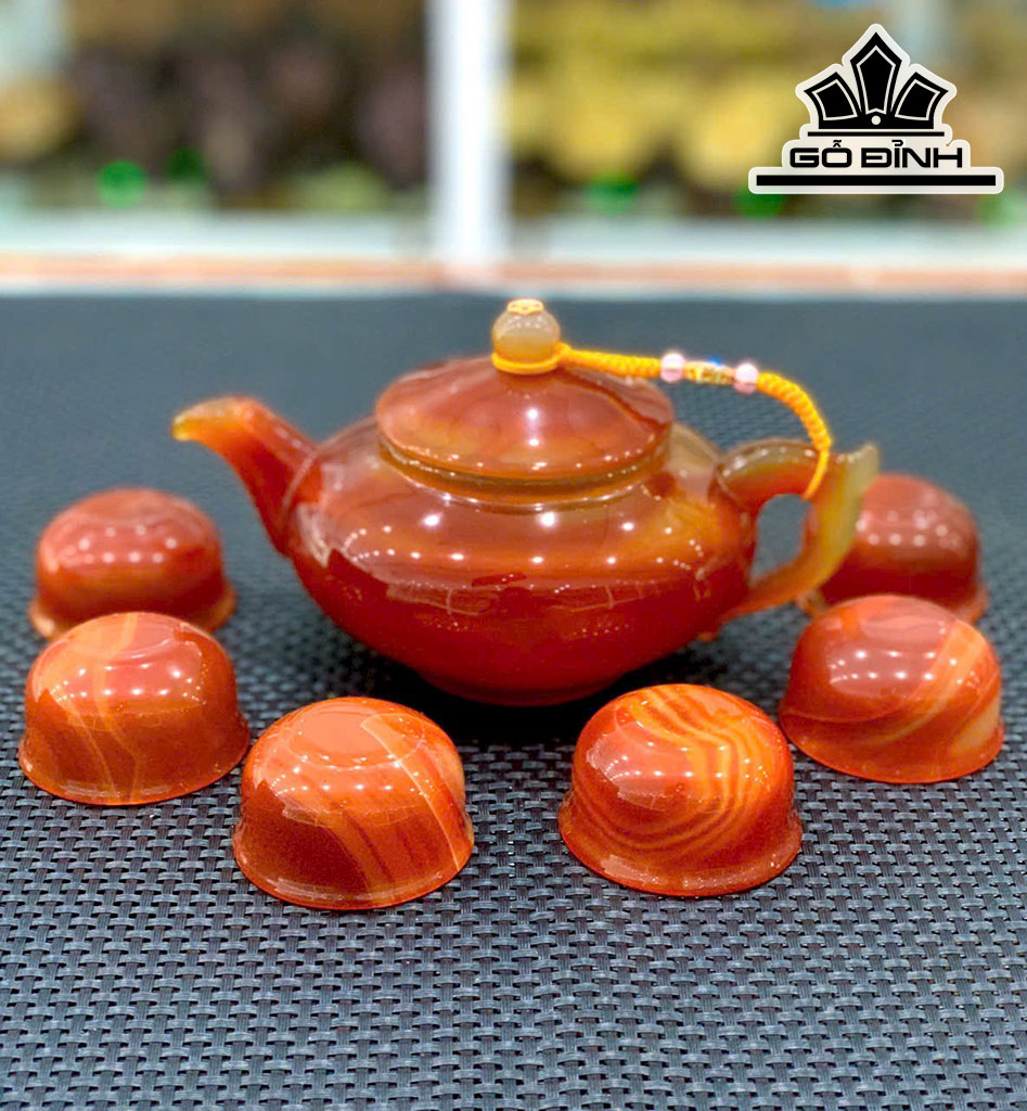 Bộ Ấm Trà Đá Mã Não Cao 10 Ngang 20 (cm)