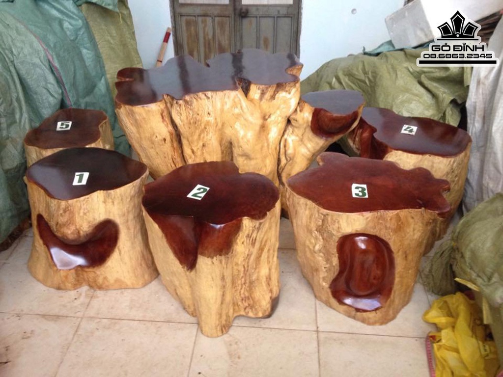 Bộ Bàn 5 Đôn Gỗ, Đôn Gốc Cây Gỗ Đinh Hương