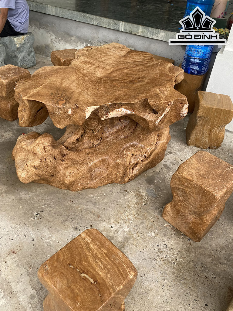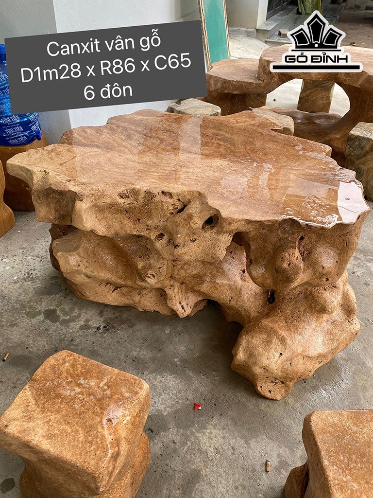 Bộ Bàn 6 Đôn Đá Canxit Bàn Cao 65 Ngang 86 Dài 128 (cm)