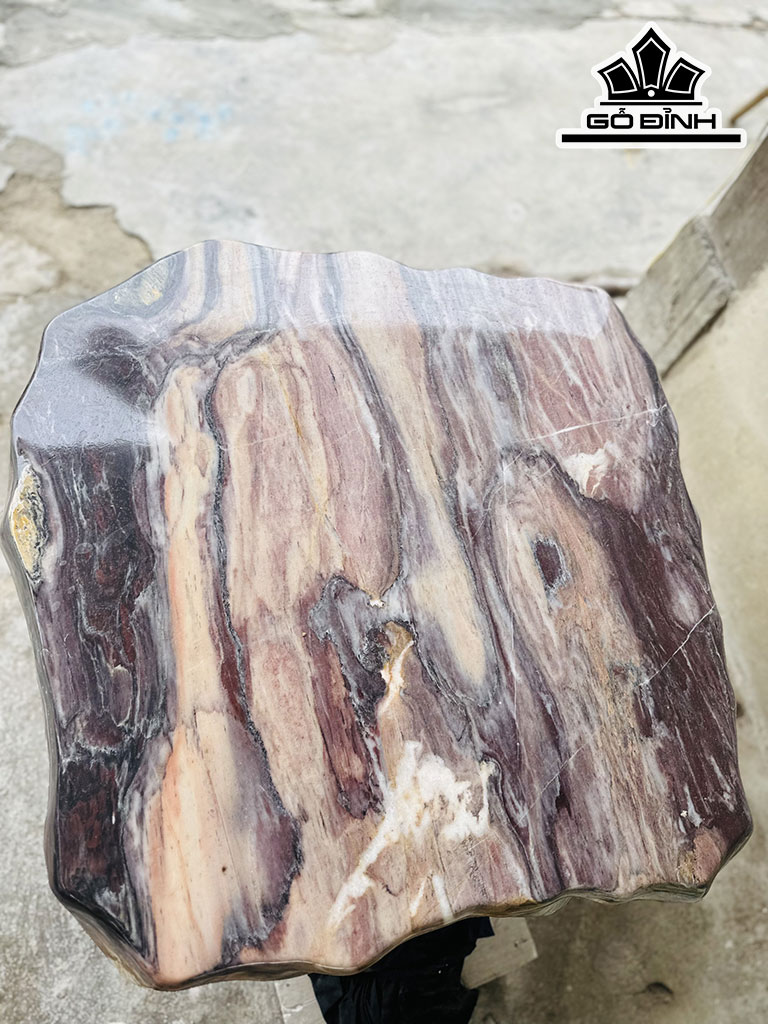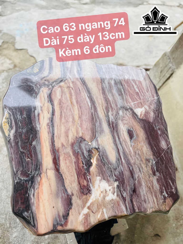 Bộ Bàn 6 Đôn Đá Serpentine Đỏ Đa Sắc Cao 63 Ngang 74 Sâu 13 (cm) 560kg