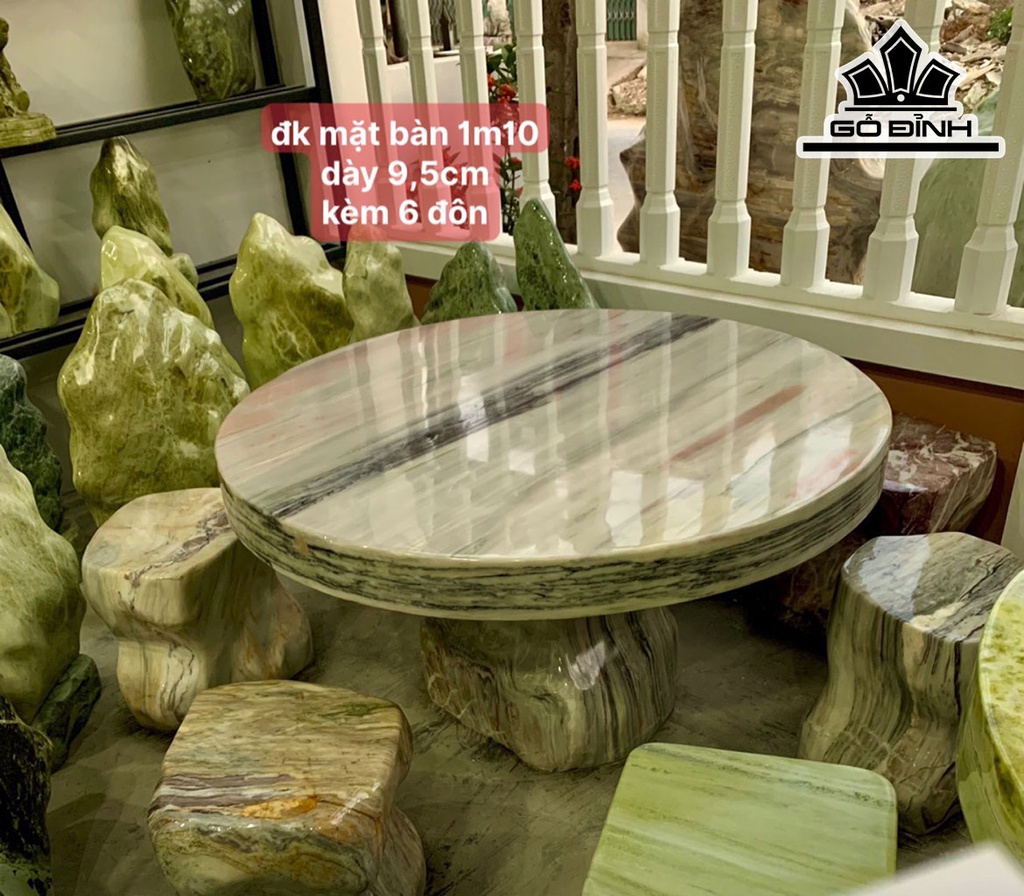 Bộ Bàn 6 Đôn Đá Serpentine Đường Kính Mặt Bàn 110 Sâu 5,5 (cm)