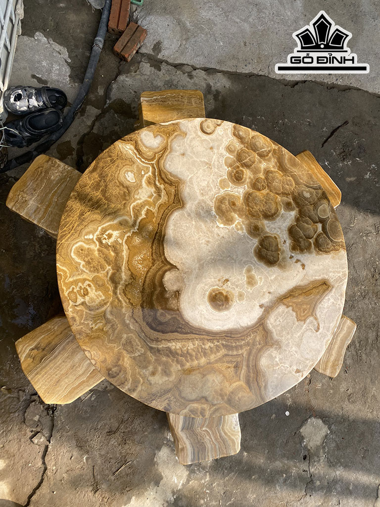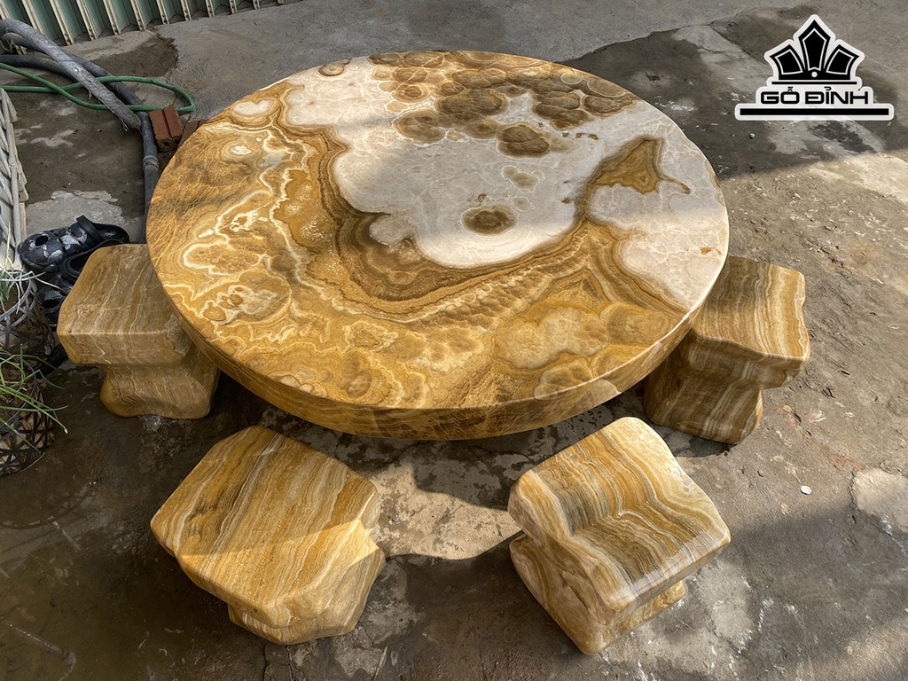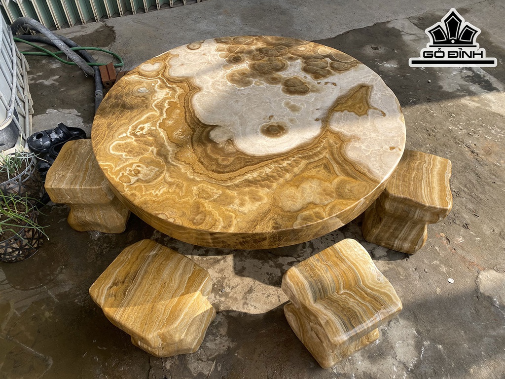 Bộ Bàn 6 Đôn Đá Vân Hoa Nu Canxit Mật