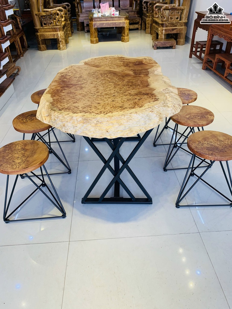 Bộ Bàn Ghế 1 Bàn 6 Ghế Gỗ Nu Ngọc Am Mặt Liền Bàn Cao 77 Ngang 134 Sâu 75 (cm)