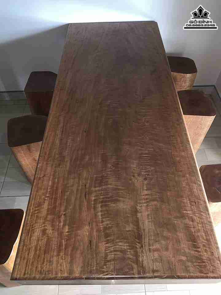 Bộ Bàn Ghế Bằng Lăng Chun Bàn Dài 1m75 Rộng 70 Dày 13 Đôn Cao 48 Mặt Vuông 25 (cm)