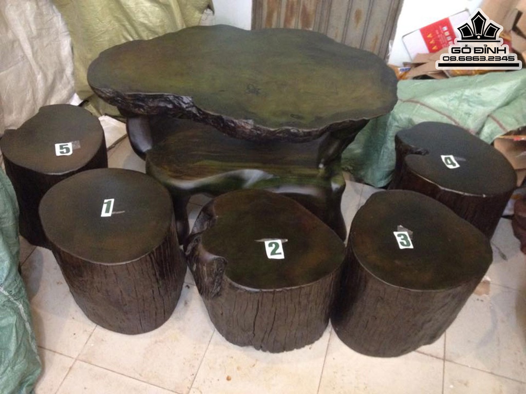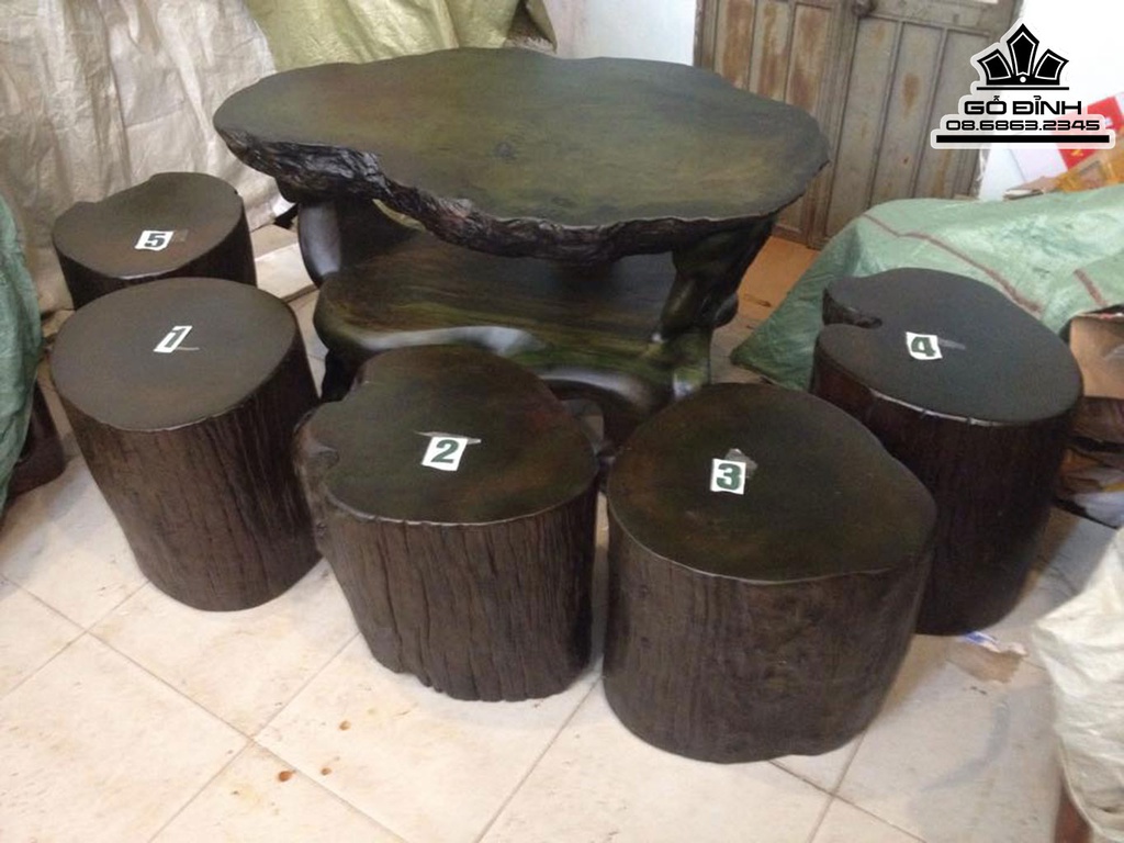 Bộ Bàn Ghế Đôn Gỗ, Đôn Gốc Cây Gỗ Sao Xanh Cao 64