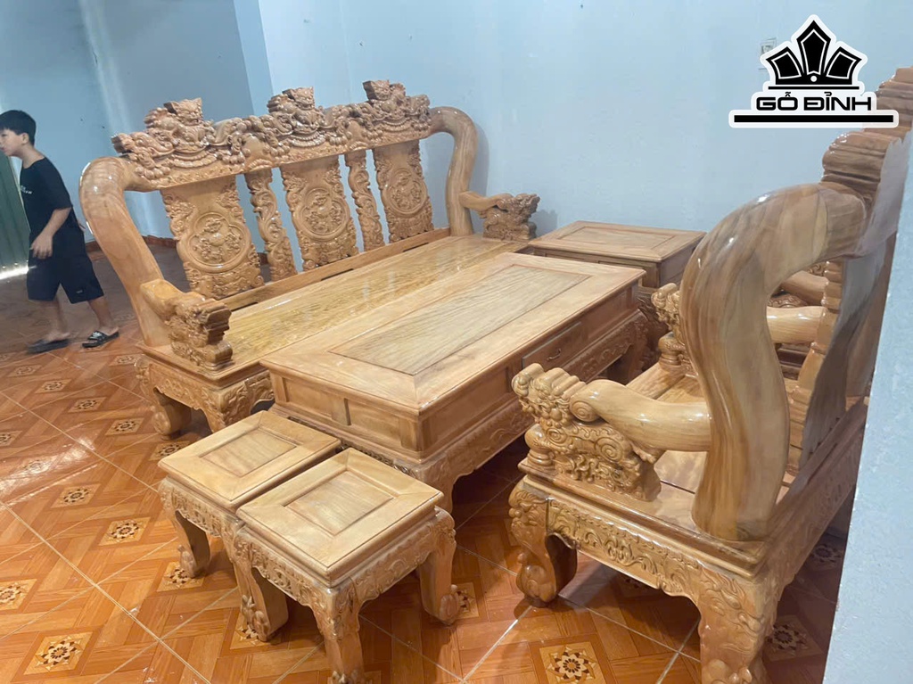 Bộ Bàn Ghế Gỗ Lát 7 Món - Tay 15