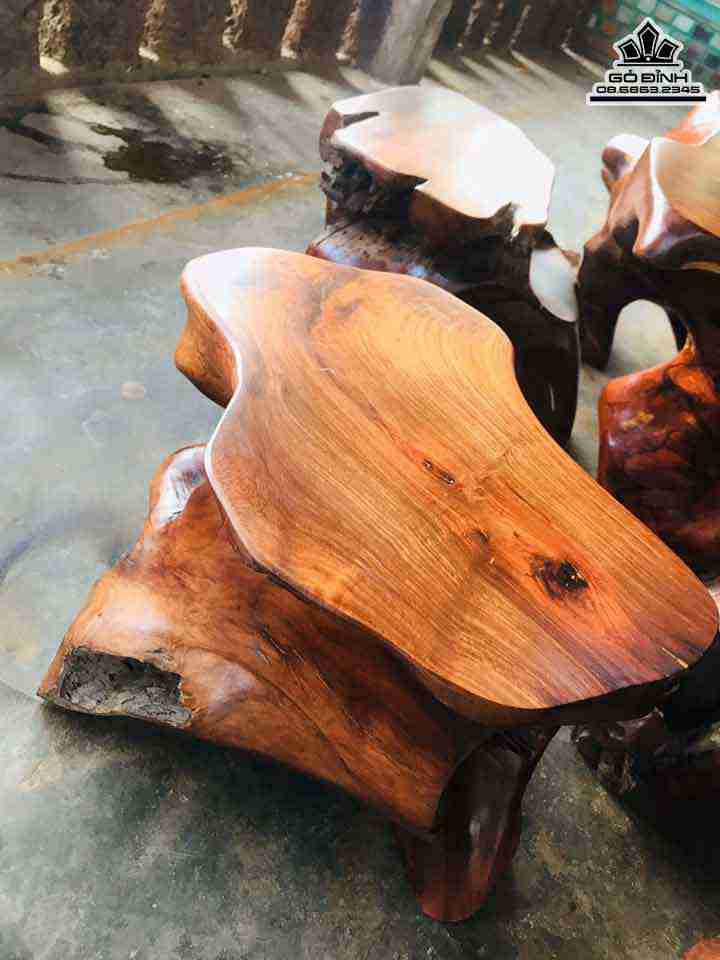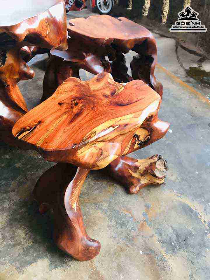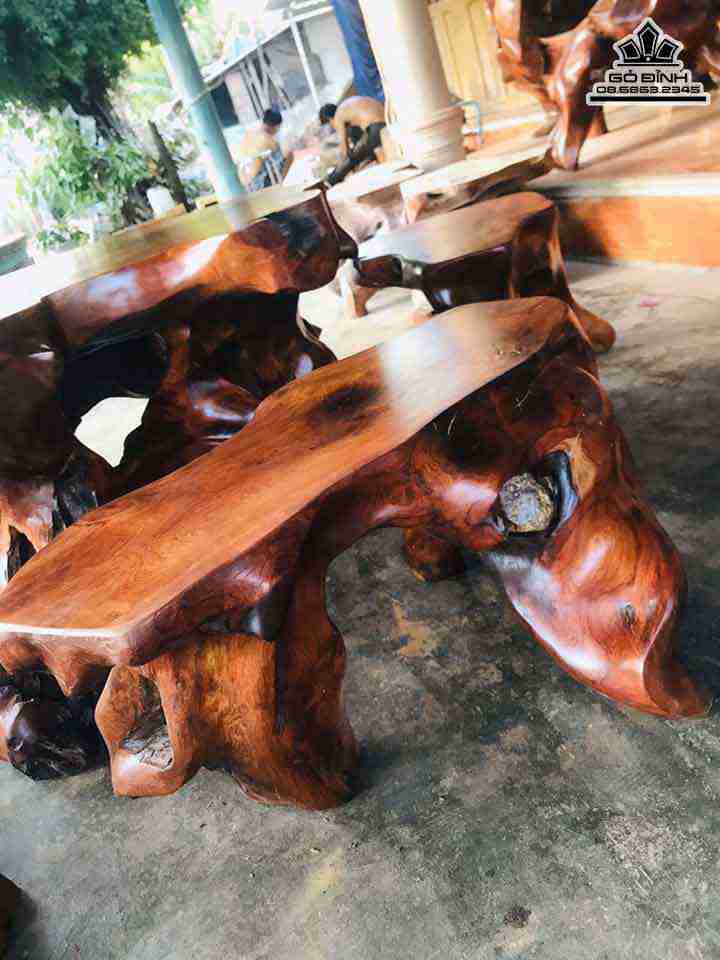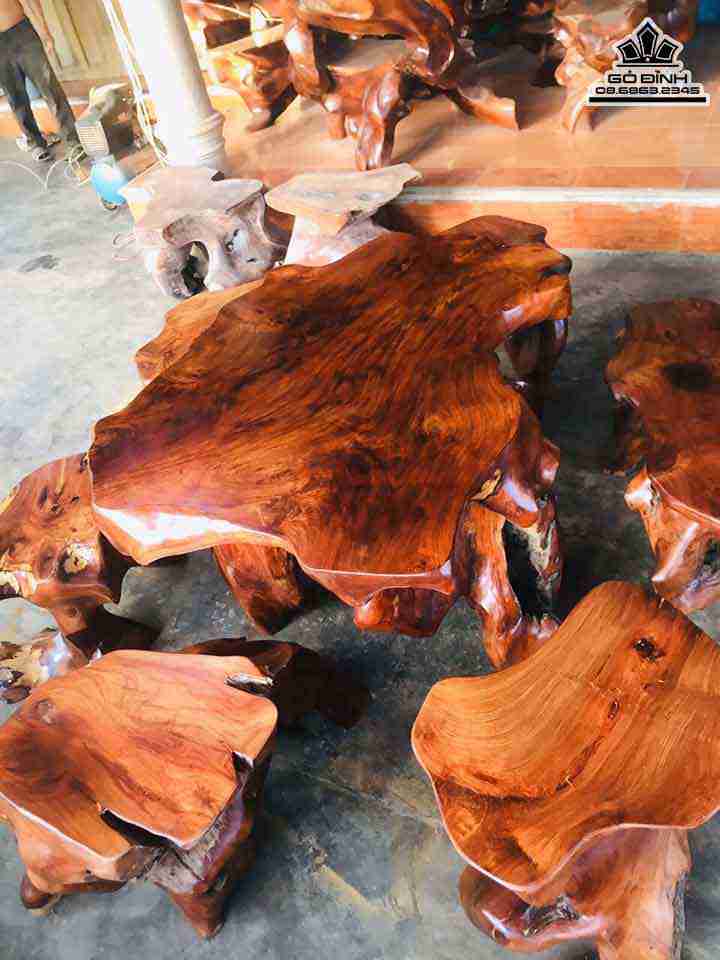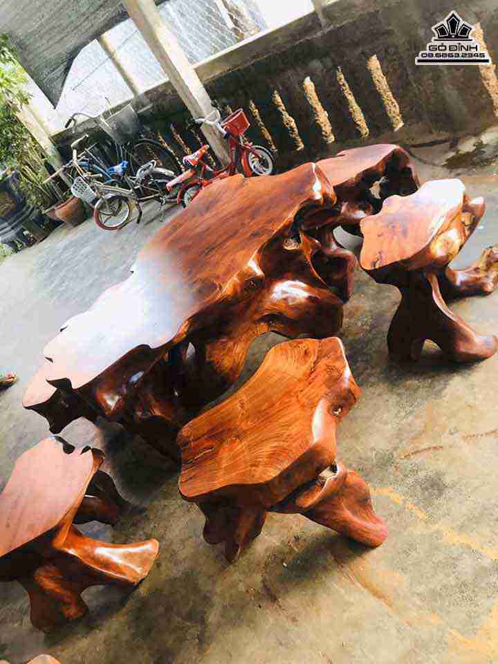 Bộ Bàn Ghế Gốc Cây Gỗ Hương Gia Lai Gồm 1 Bàn 6 Đôn
