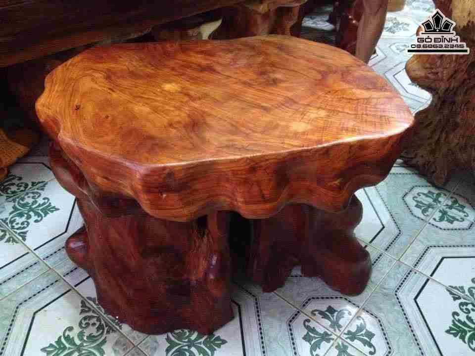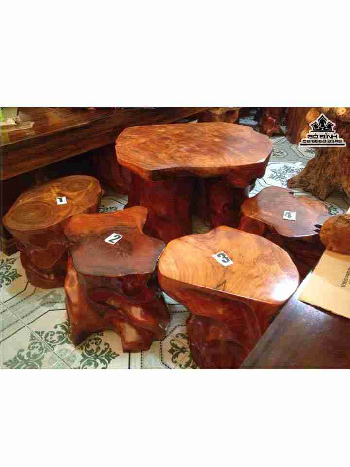 Bộ Bàn Ghế Gốc Cây Gồm 1 Bàn Gỗ Hương Và 4 Đôn Gỗ Gõ Đỏ ( Cate)