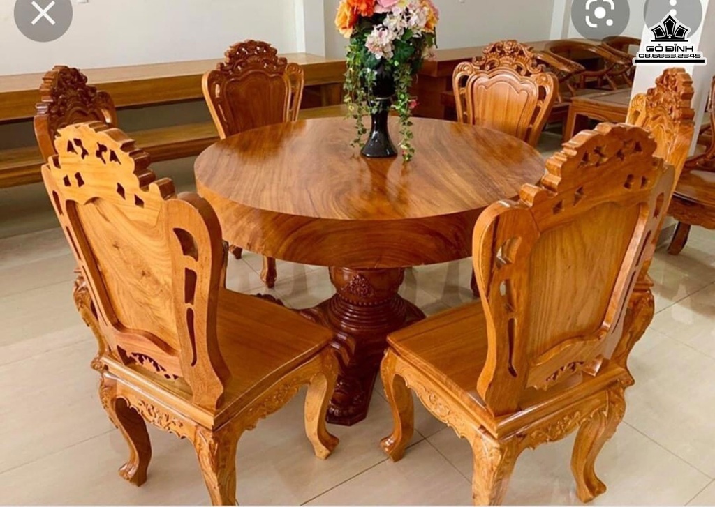 Bộ Bàn Ghế Hoàng Gia Gỗ Gõ Bàn Đường Kính 150 (cm)