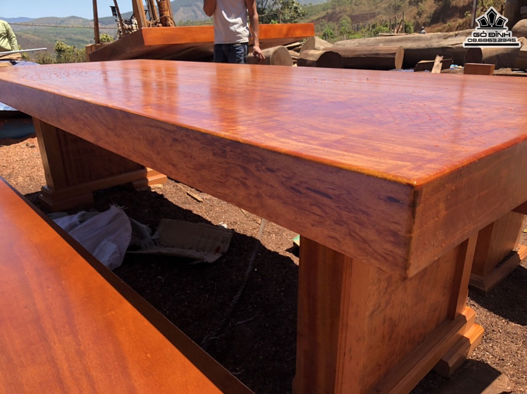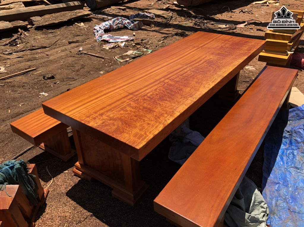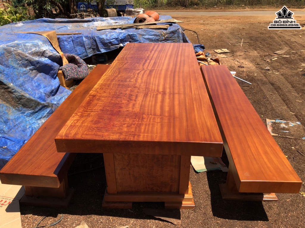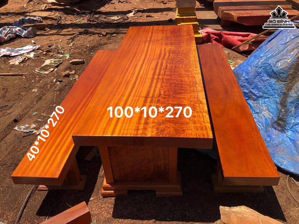 Bộ Bàn Ghế K3 Gỗ Gõ Bàn Dài 270 Rộng 100 Dày 10 Ghế Dàu 270 Rộng 40 Dày 10 (cm)