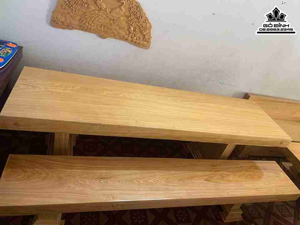 Kích Thước: Bàn Rộng 70cm Dài 50cm Dày 12cm -  Ghế Rộng 40cm Dài 240cm Dày 10cm