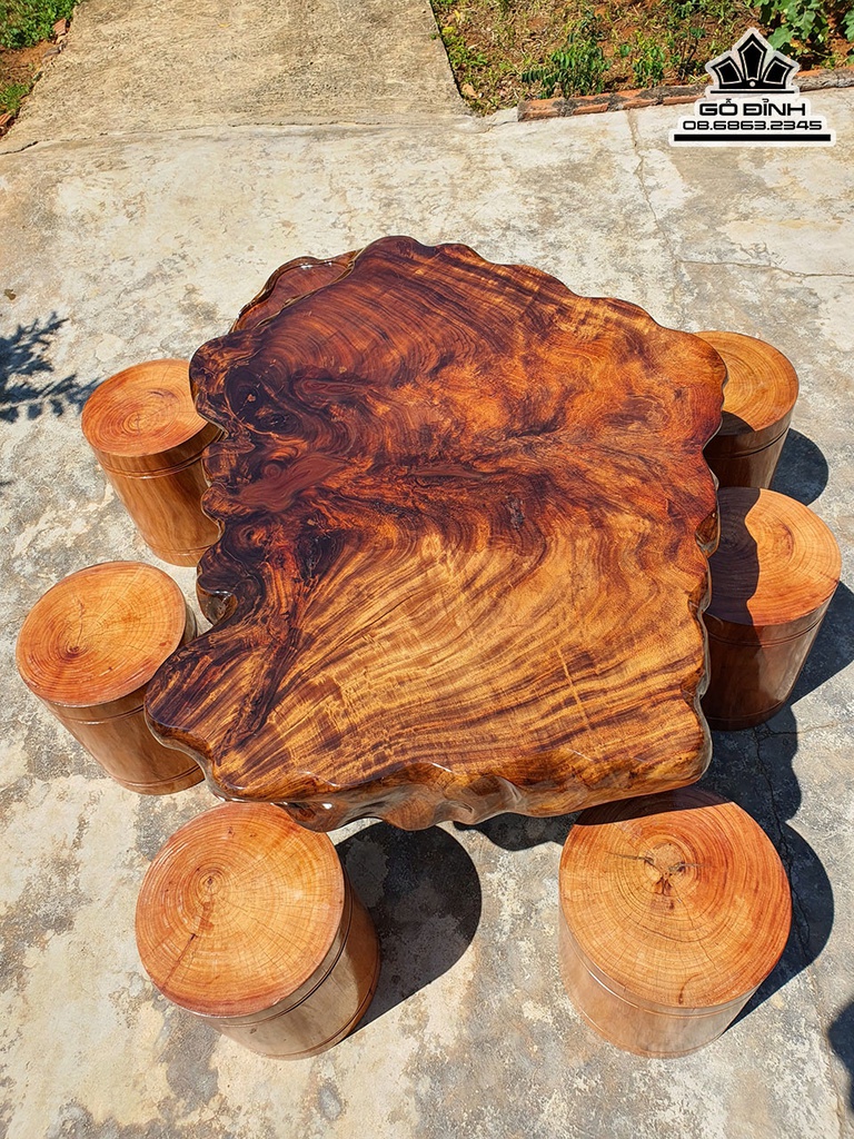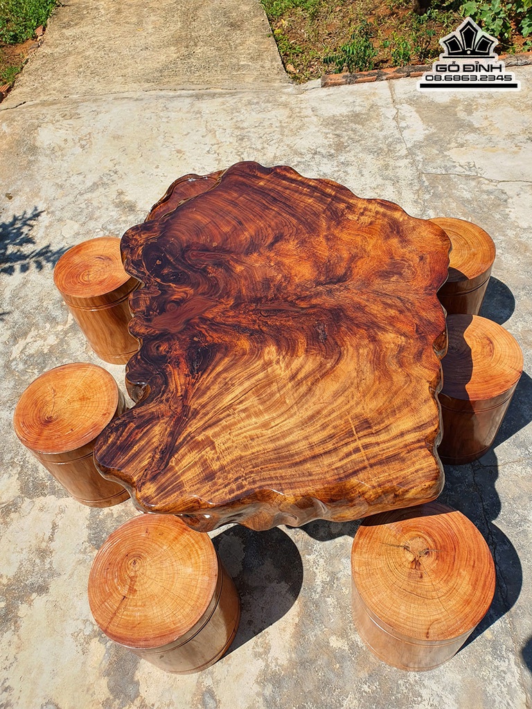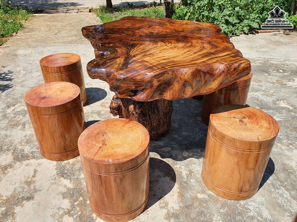 Bộ Bàn Gỗ Muồng Dài 135 Rộng 90 Dày 15 Ghế Gỗ Lim