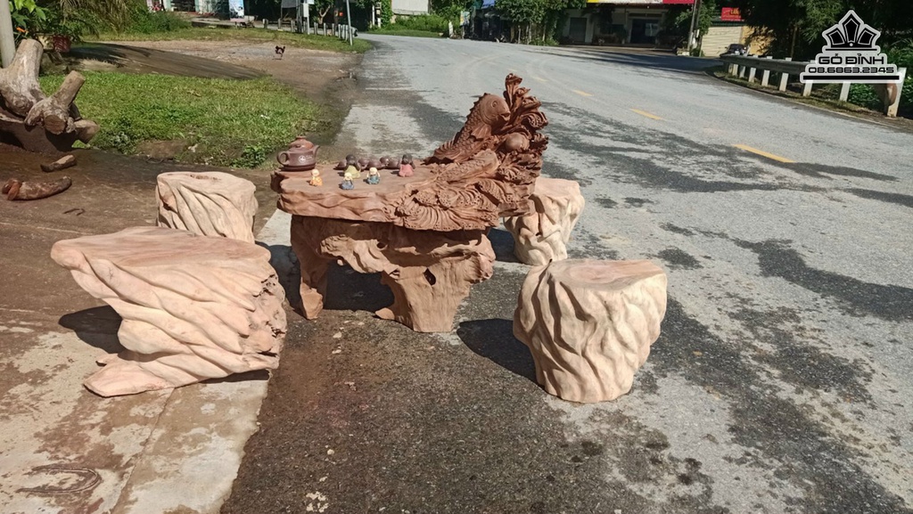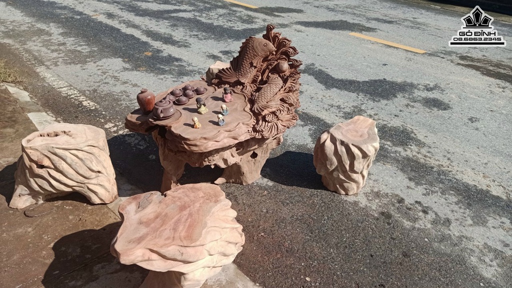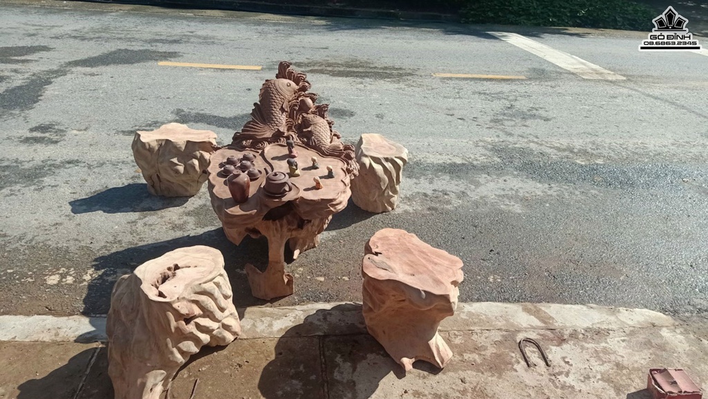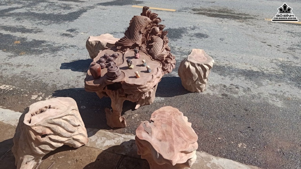 Bộ Bàn Gốc Cây Gỗ Xá Xị Cao 76