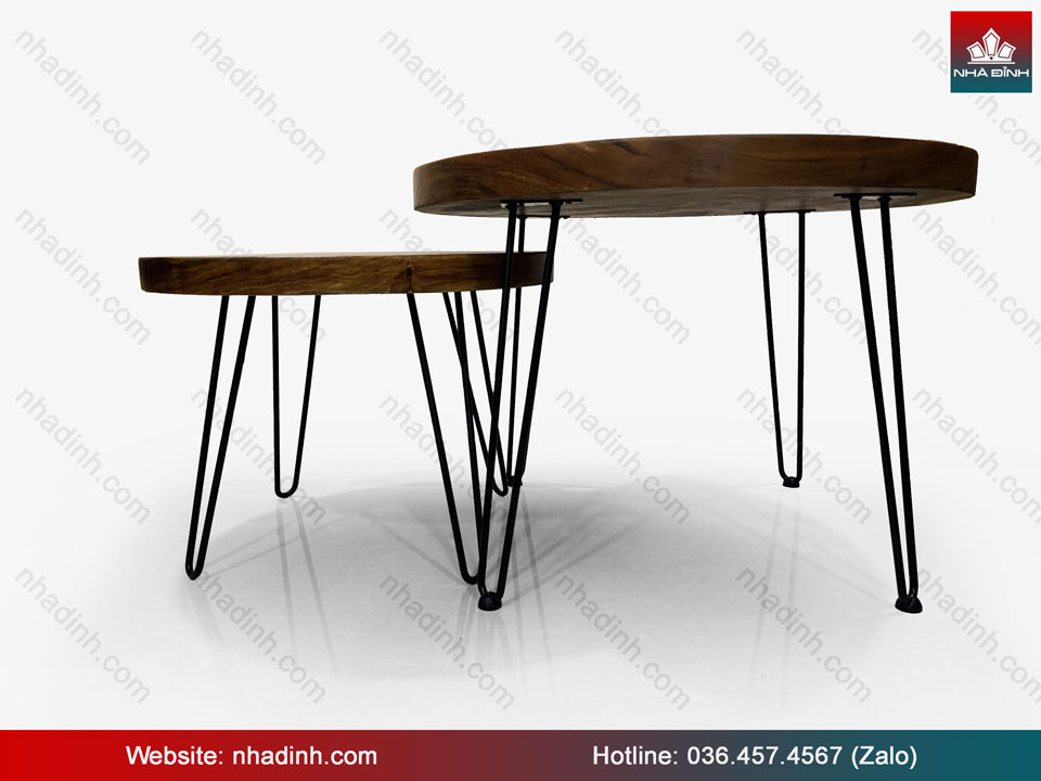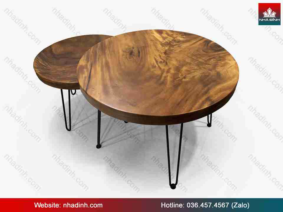 Bộ Bàn Tròn Sofa Gỗ Me Tây Nguyên Khối đường kính 600 và 770 dày 50 (mm)