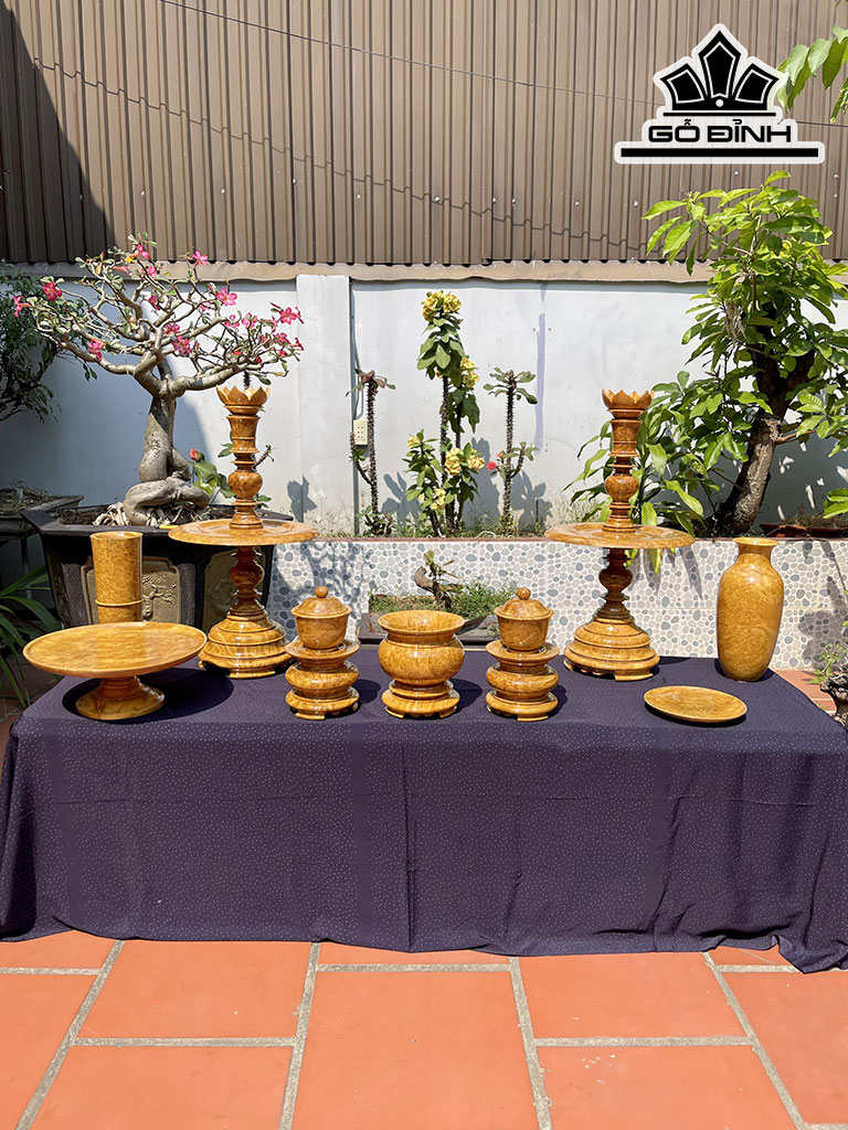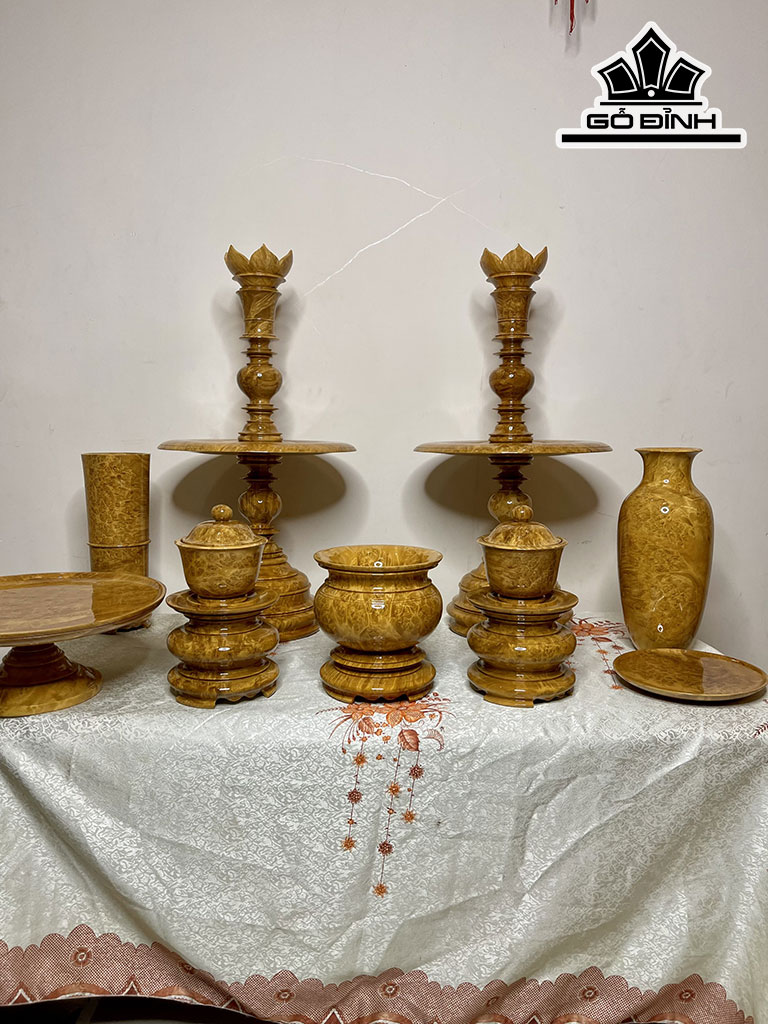 Bộ Đèn Thờ Gỗ Nu Dổi Cao 70 (cm)