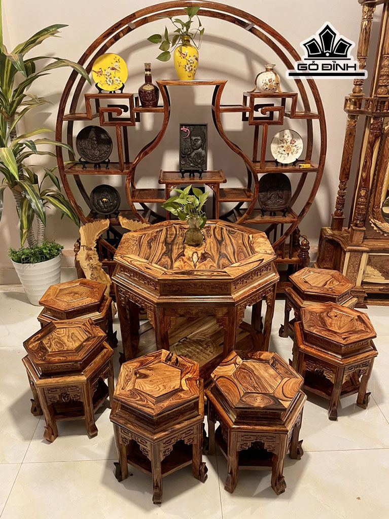 Bộ Đôn 7 Món Gỗ Cẩm Việt Bàn Cao 70 Mặt Bàn Rộng 81 - Ghế Cao 43 Mặt Ghế Rộng 36 (cm)