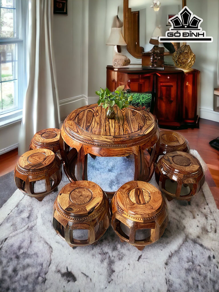 Bộ Đôn Gỗ Cẩm Bàn Cao 63 Đường Kính Mặt Bàn 76 (cm)