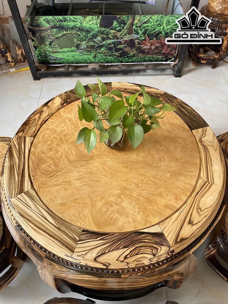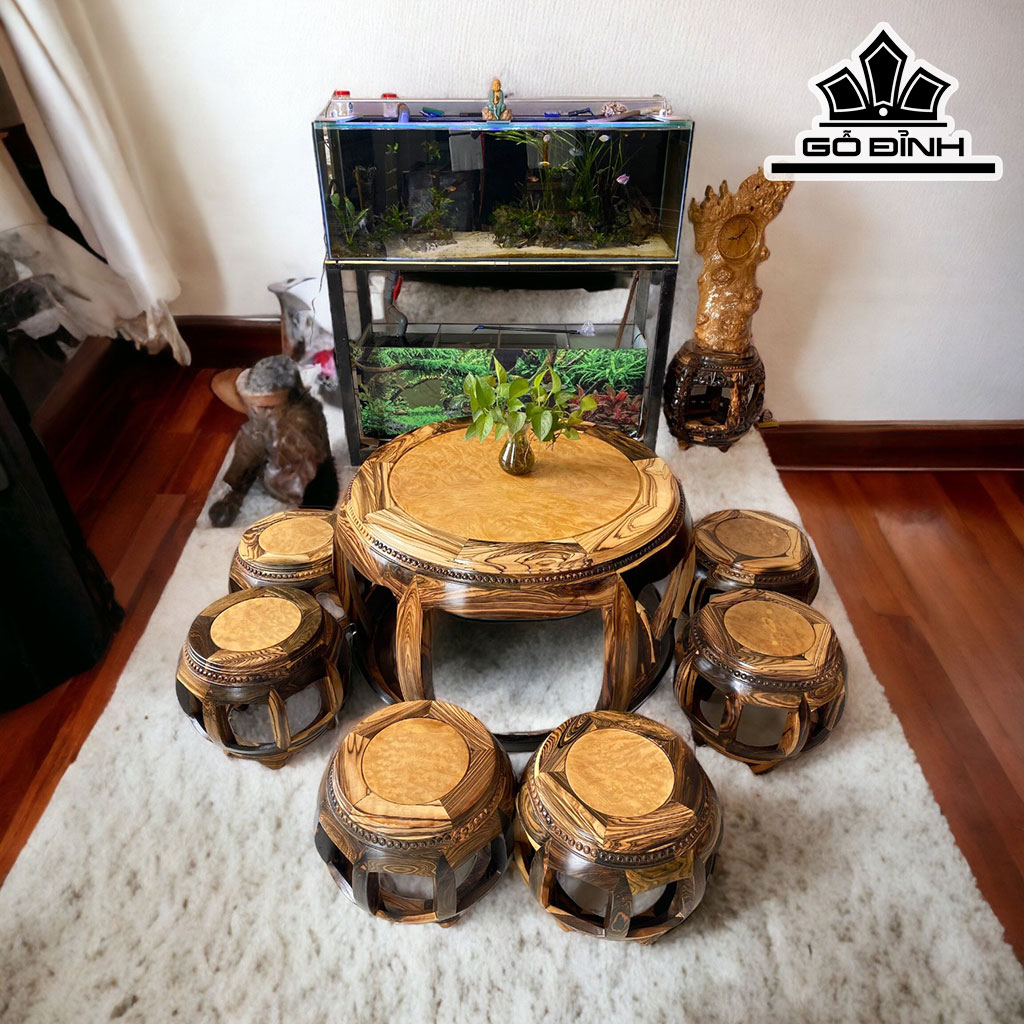 Bộ Đôn Gỗ Mun Hoa Bàn Cao 60 Đường Kính Mặt 75 Phủ Bì Rộng 92 (cm)