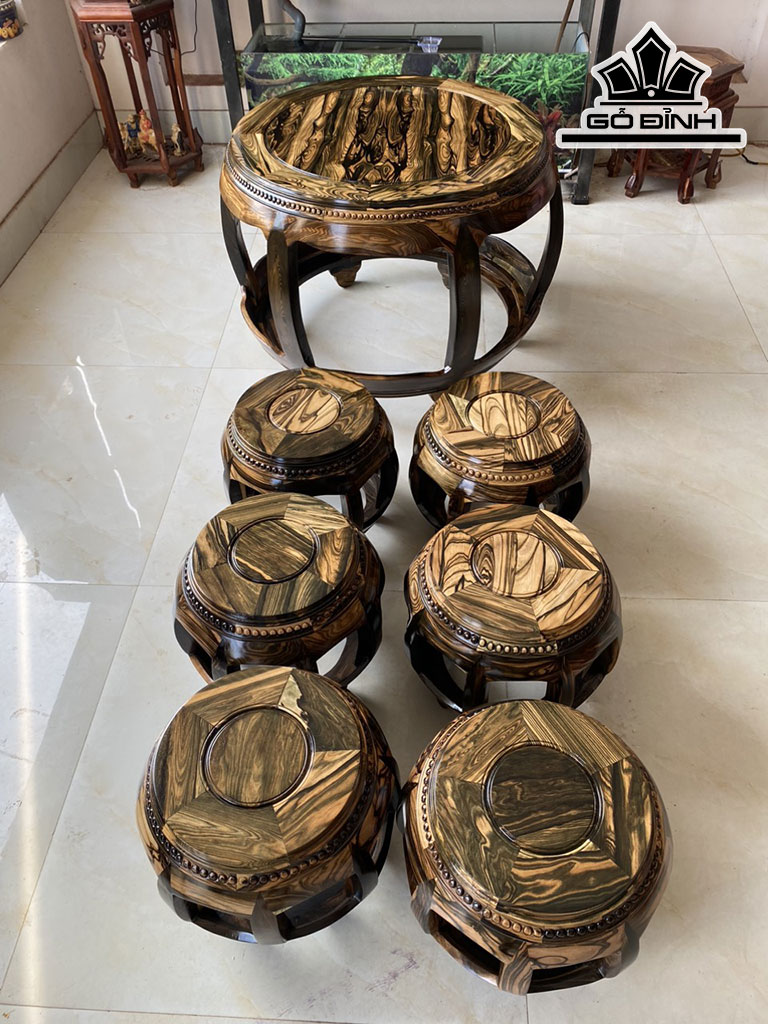 Bộ Đôn Gỗ Mun Hoa Bàn Cao 62 Đường Kính Mặt 75 Phủ Bì Rộng 91 (cm)