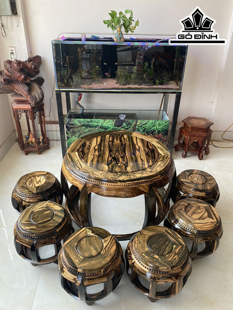 Bộ Đôn Gỗ Mun Hoa Bàn Cao 62 Đường Kính Mặt 75 Phủ Bì Rộng 91 (cm)
