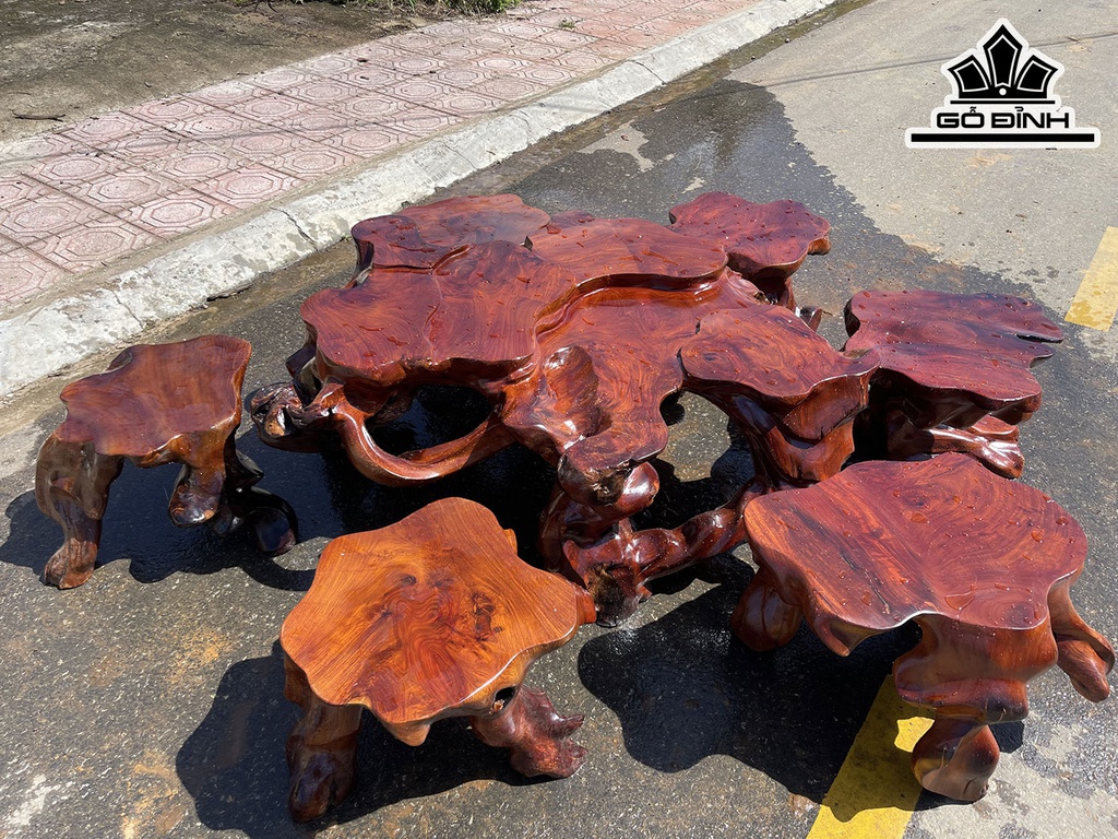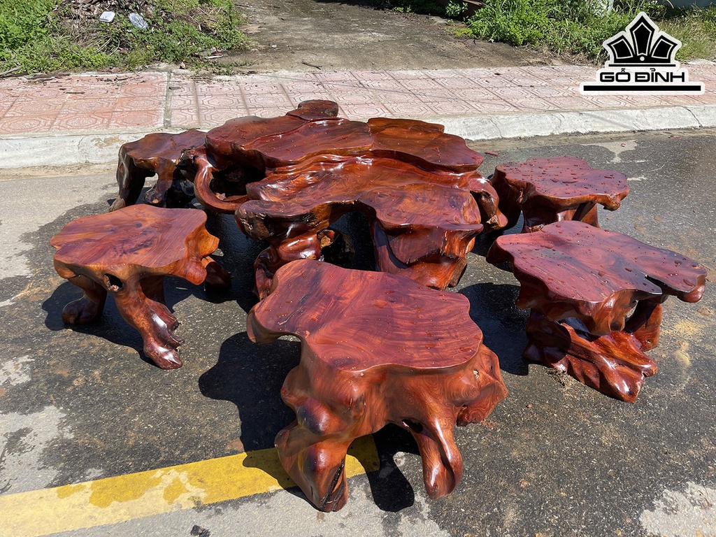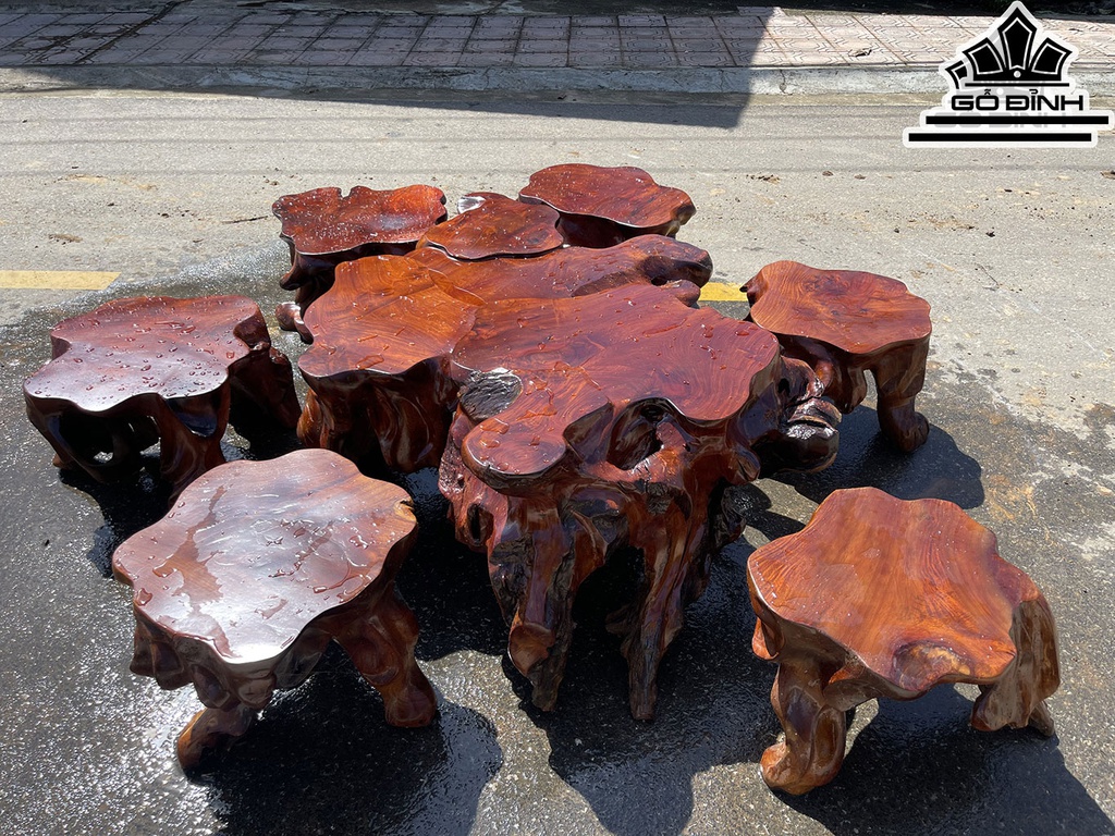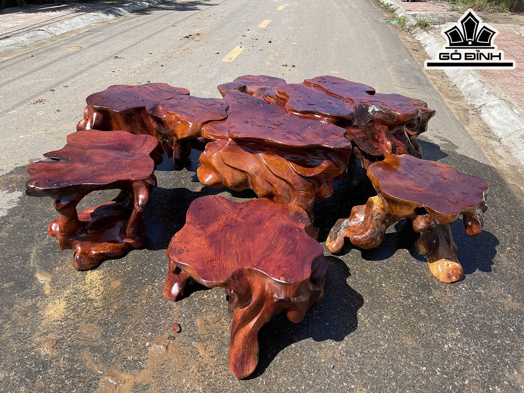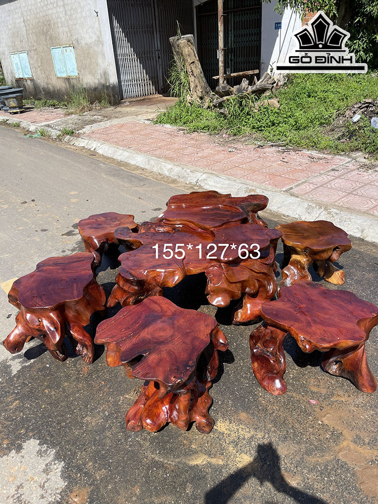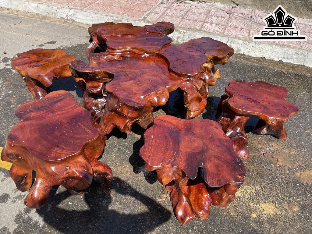 Bộ Gốc 6 Đôn Gỗ Hương Mặt 50-60 (cm)