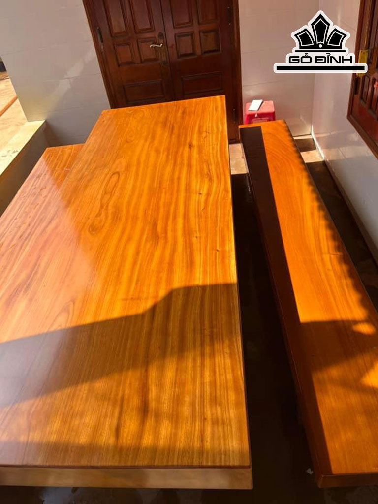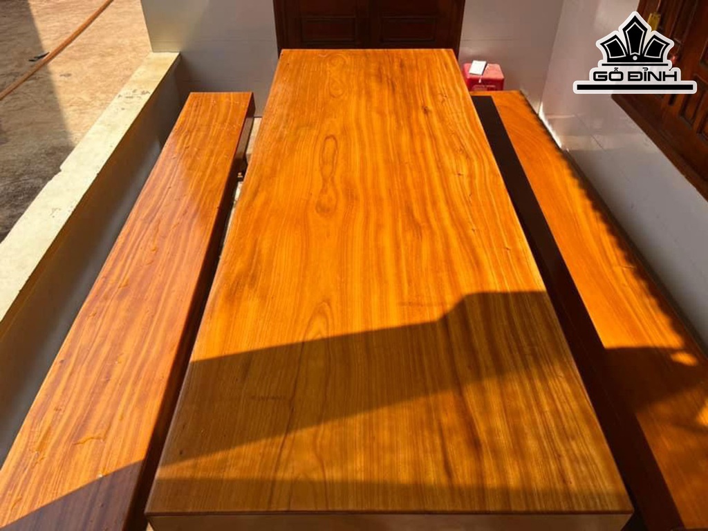 Bộ K3 Gỗ Gõ Đỏ Bàn Dài 300 Rộng 110 Dày 18 Ghế Dài 300 Rộng 41 Dày 12 (cm)