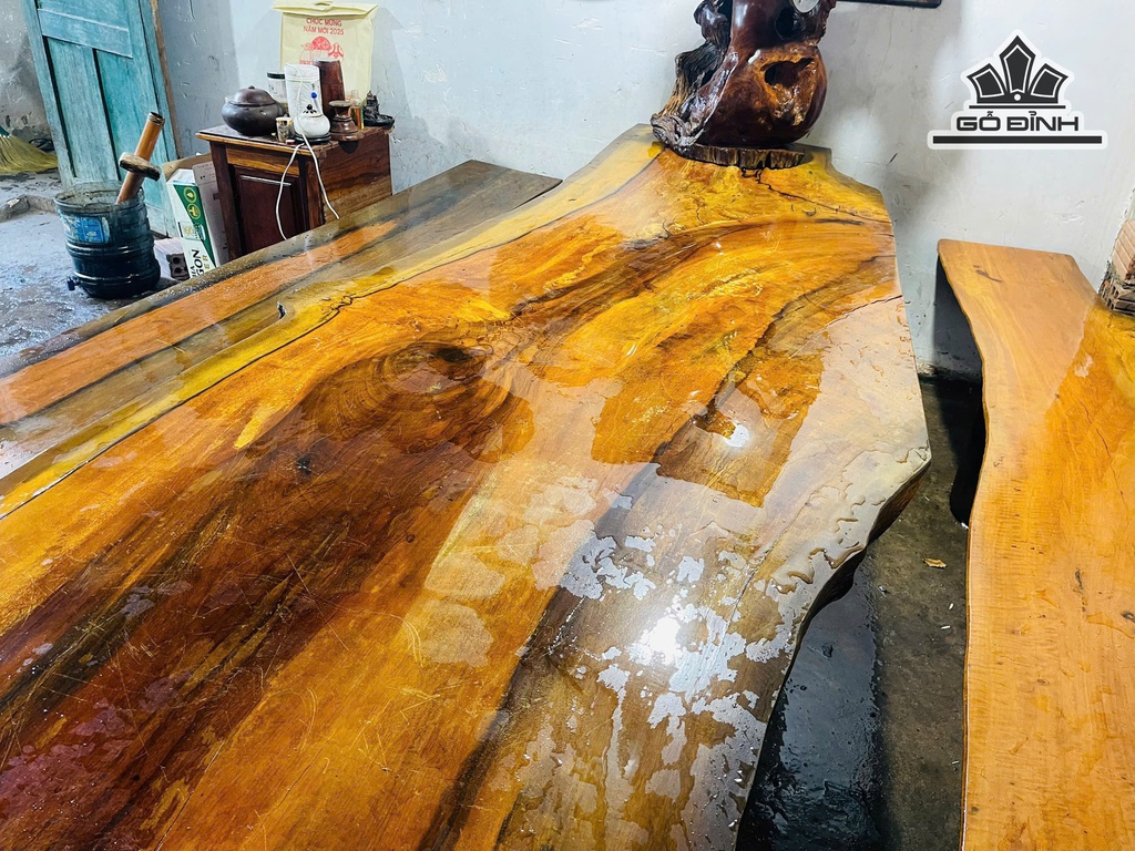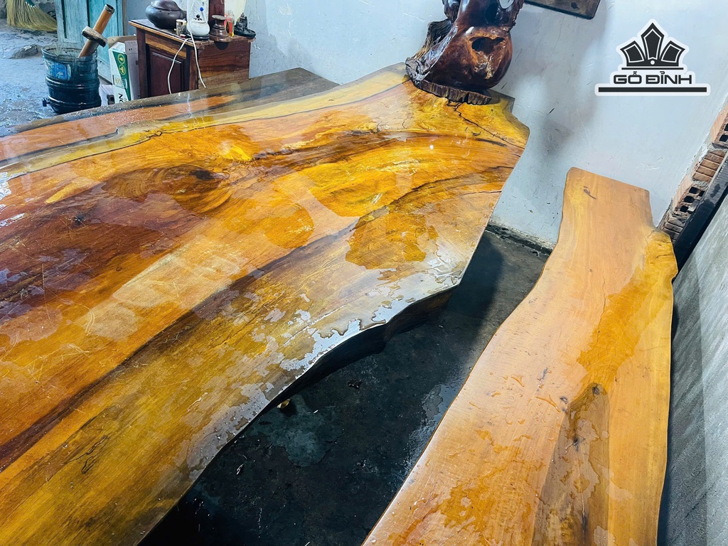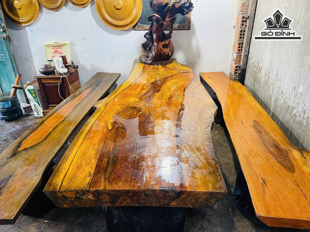 Bộ K3 Gỗ Trai Vàng - Bàn Dài 250x65-90x12 - Băng Ghế 250x40x8 (cm)