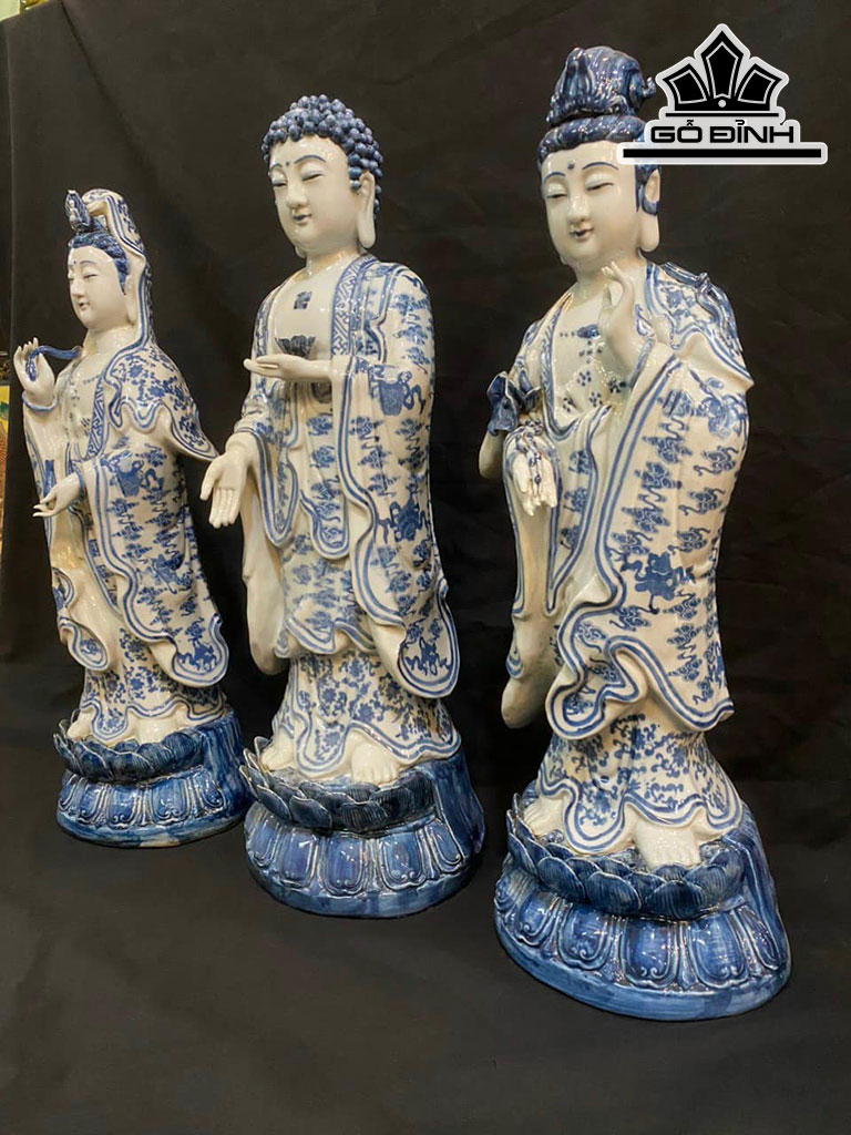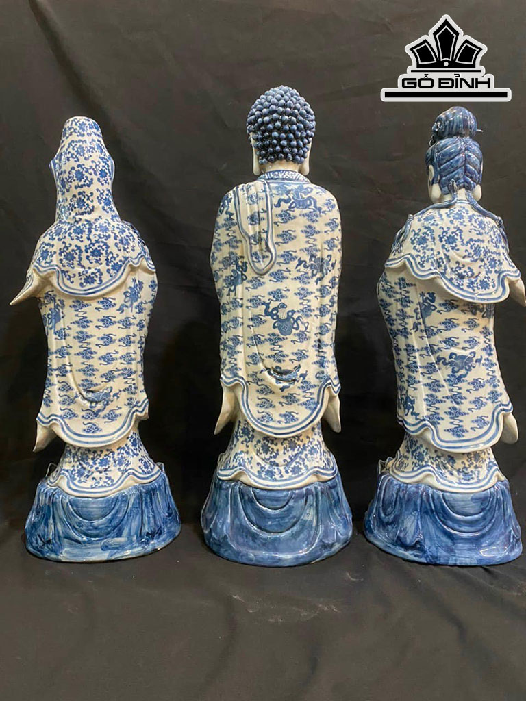 Bộ Tam Thế Phật Men Xanh Tràm Gốm Tàu Cao 60 (cm)