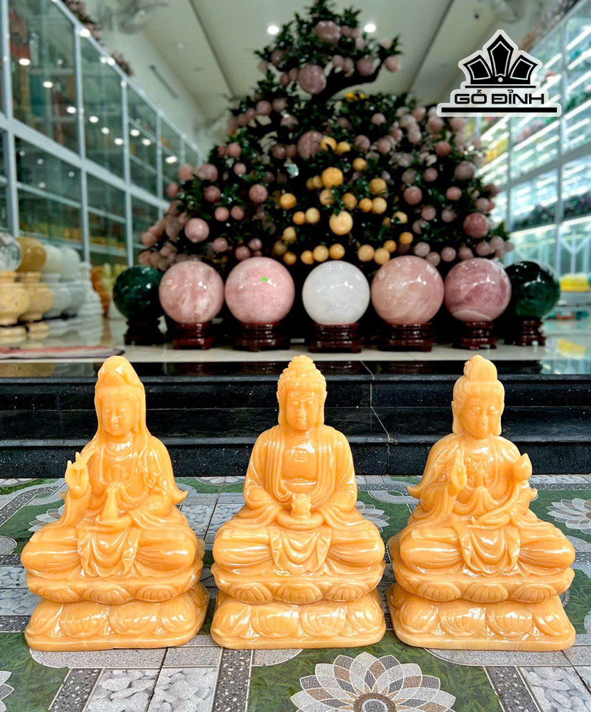Bộ Tam Thế Phật Ngồi Đá Ngọc Hoàng Long Cao 38 Ngang 24 (cm) 40kg