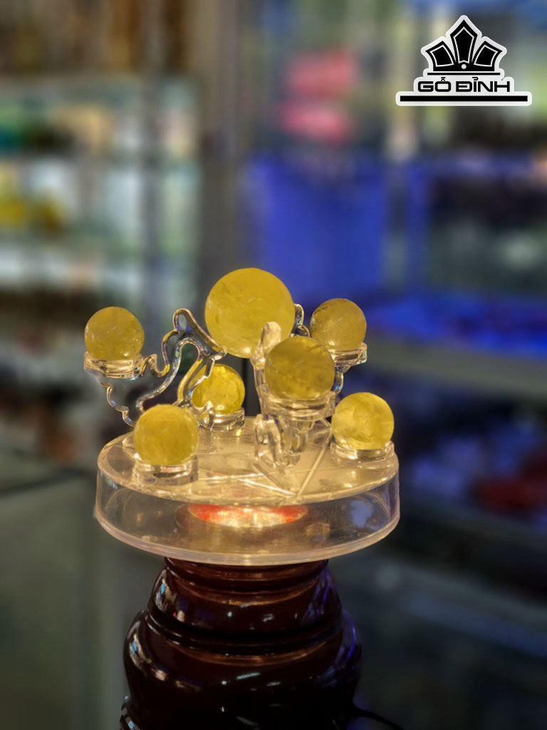 Bộ Thất Tinh Đá Thạch Anh Vàng Bi Chủ Đường Kính 4 (cm) Bi Nhỏ Đường Kính 3 (cm)