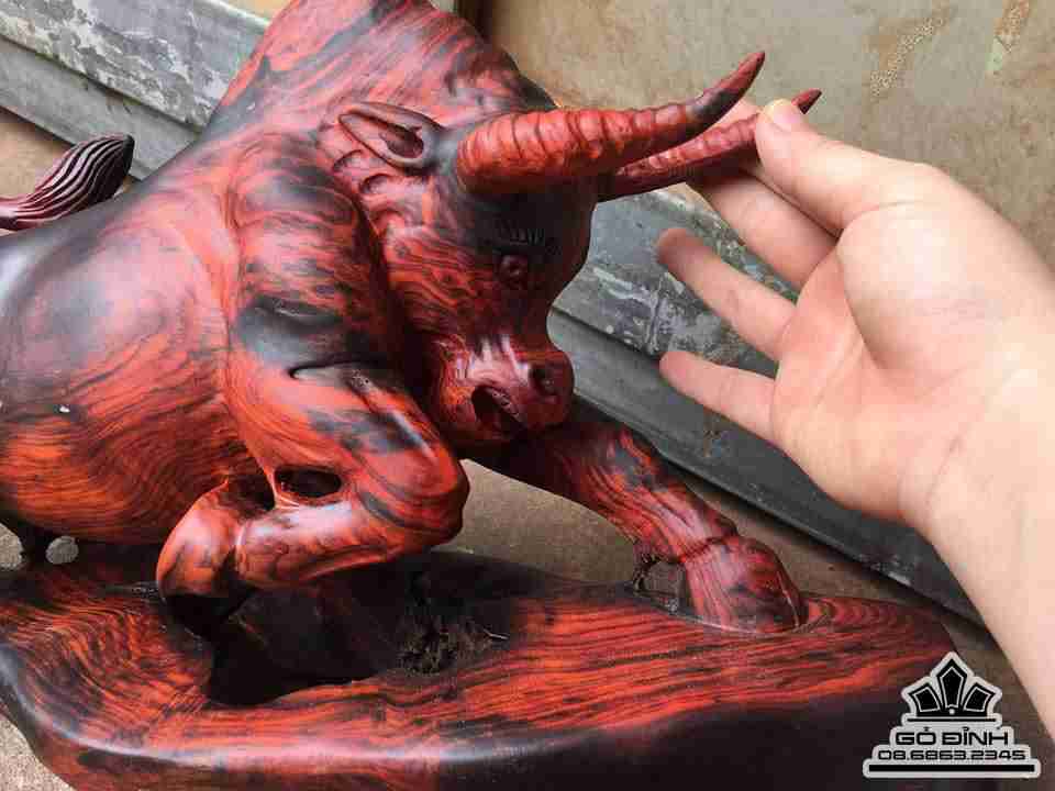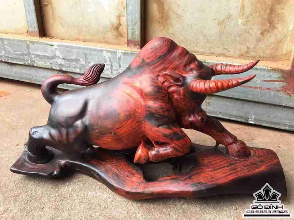 Bò tót gỗ trắc đỏ đen 47x23x16