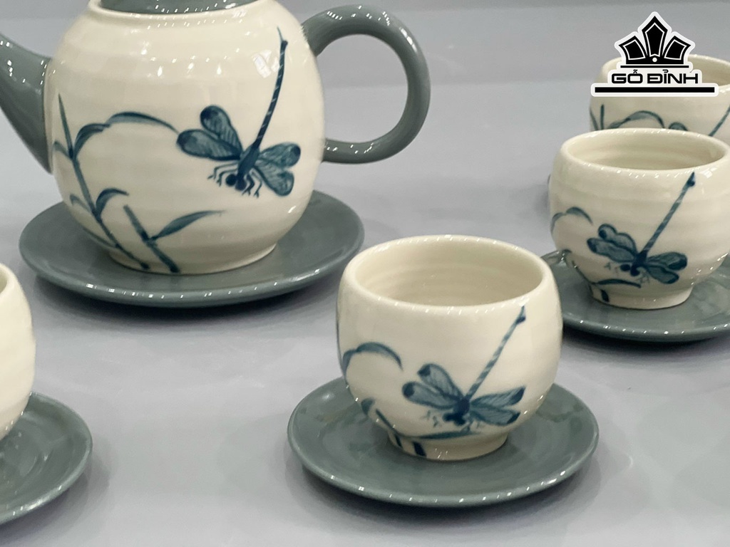Bộ Trà Chuồn Lam Vẽ Tay Gốm Bát Tràng