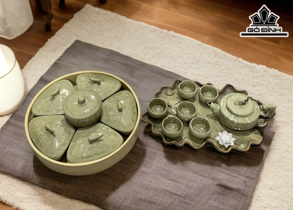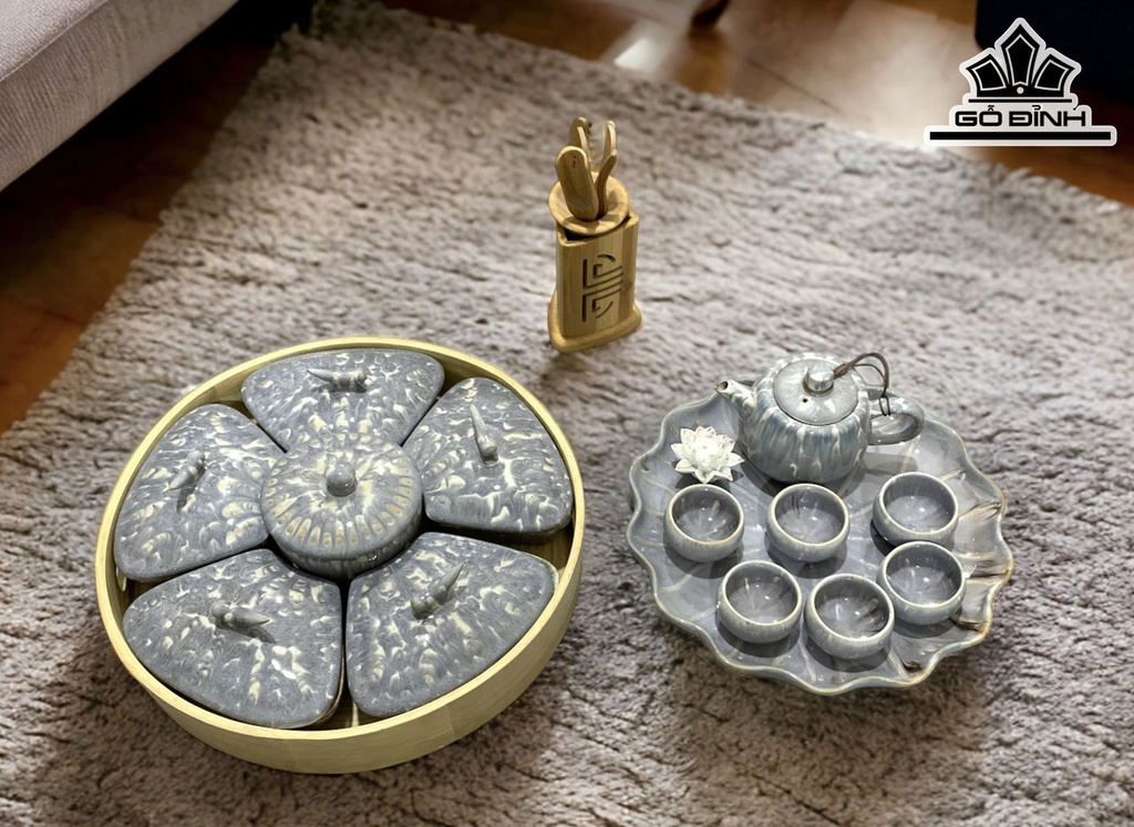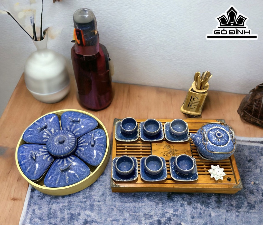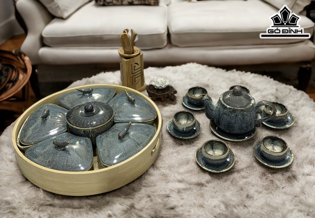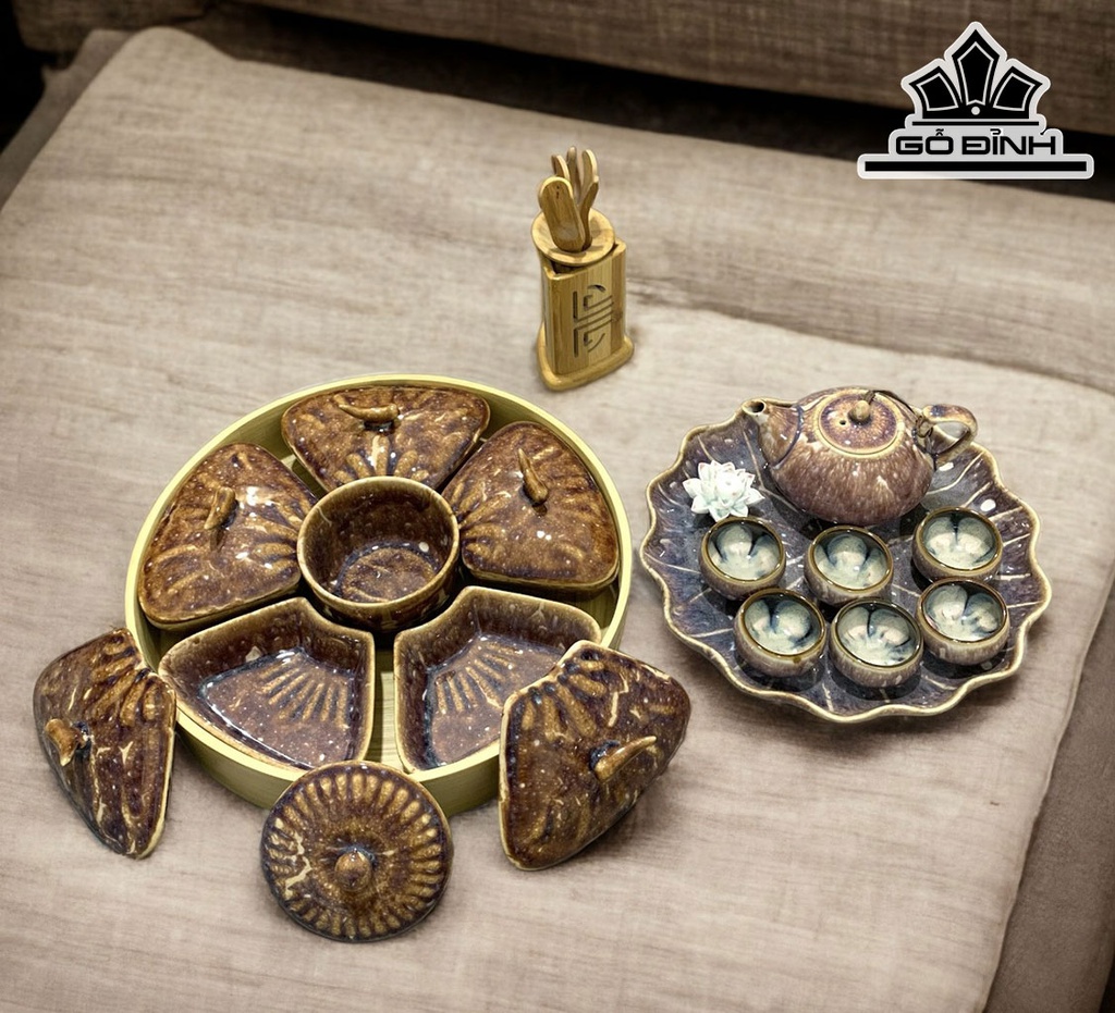Bộ Trà Và Khay Mứt Men Hỏa Biến Gốm Bát Tràng