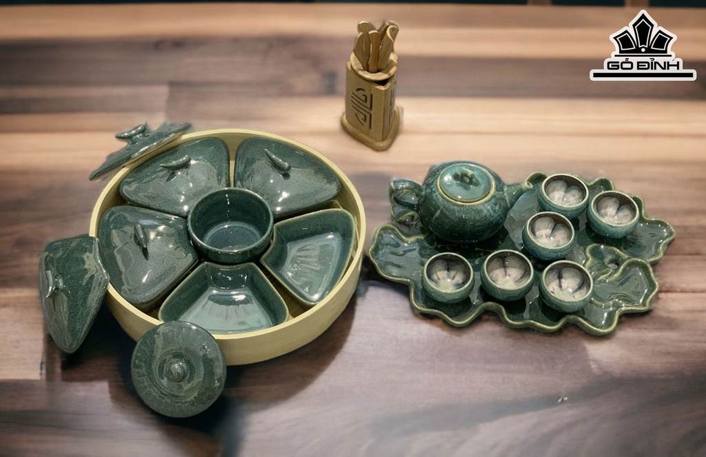 Bộ Trà Và Khay Mứt Men Hỏa Biến Gốm Bát Tràng