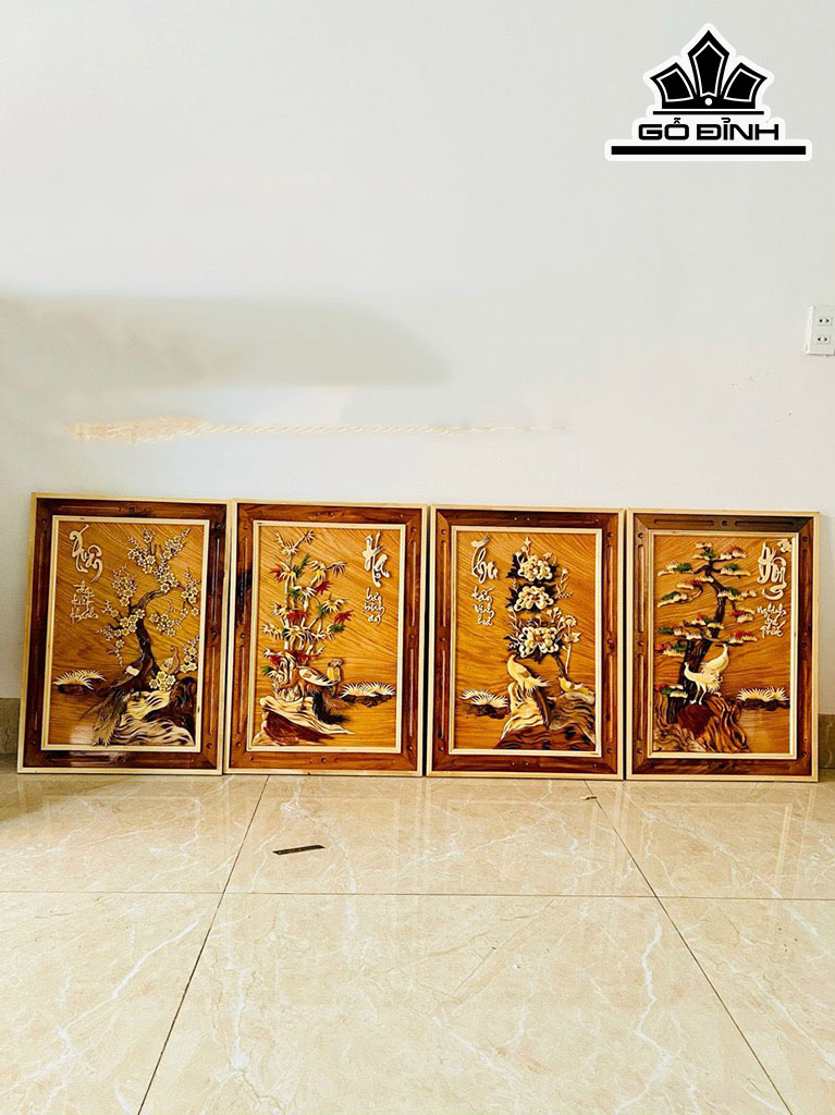 Bộ Tranh 4 Mùa Gỗ Gõ Đỏ Kích Thước Mỗi Bức 70x50 (cm)