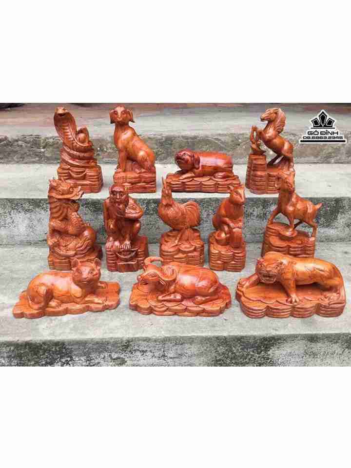 Bộ Tượng 12 Con Giáp Gỗ Hương Cao 20 (cm)