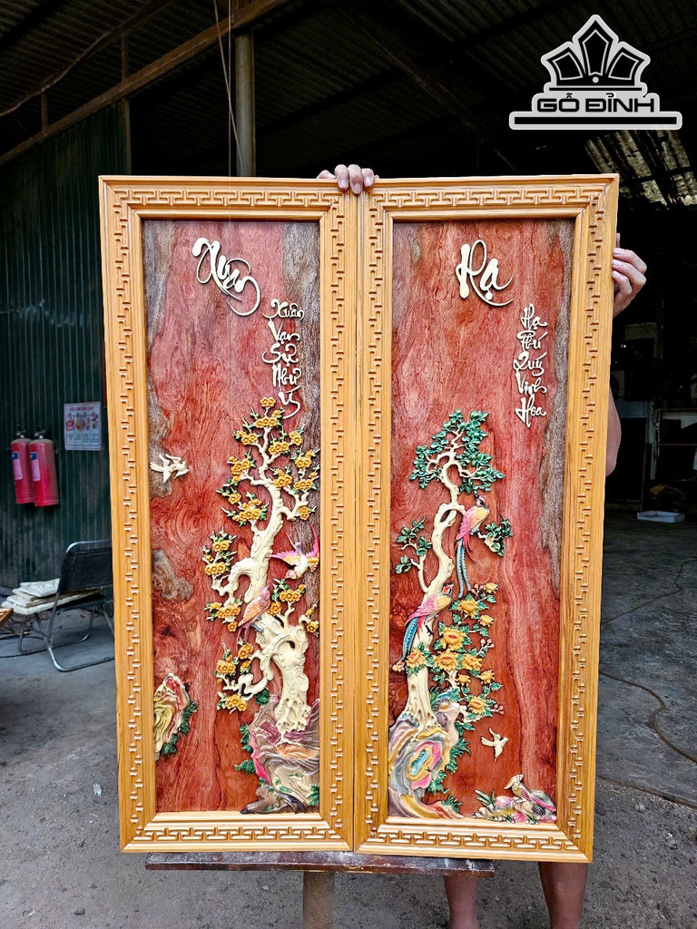 Bộ Xuân Hạ Thu Đông Nền Gỗ Hương Đá - Khung Gáo Kích Thước 109x39 (cm)