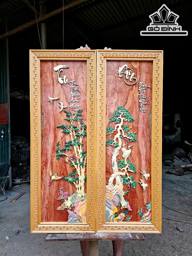 Bộ Xuân Hạ Thu Đông Nền Gỗ Hương Đá - Khung Gáo Kích Thước 109x39 (cm)