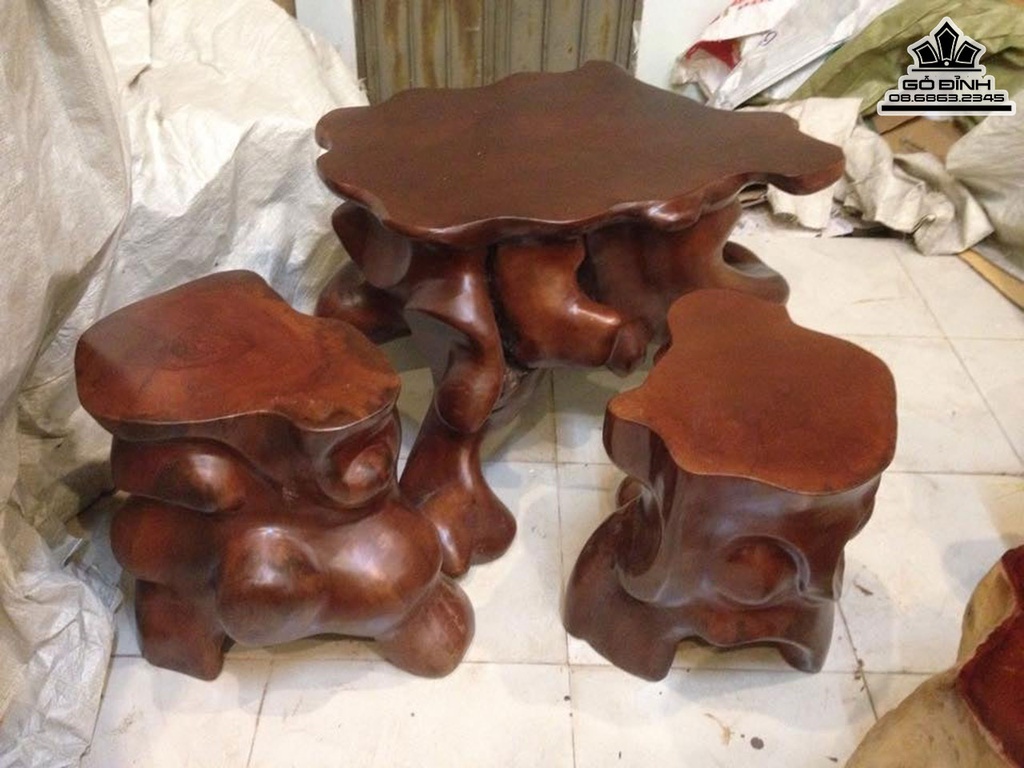 Bộ 1 Bàn 2 Đôn Gỗ Sao Xanh Bàn