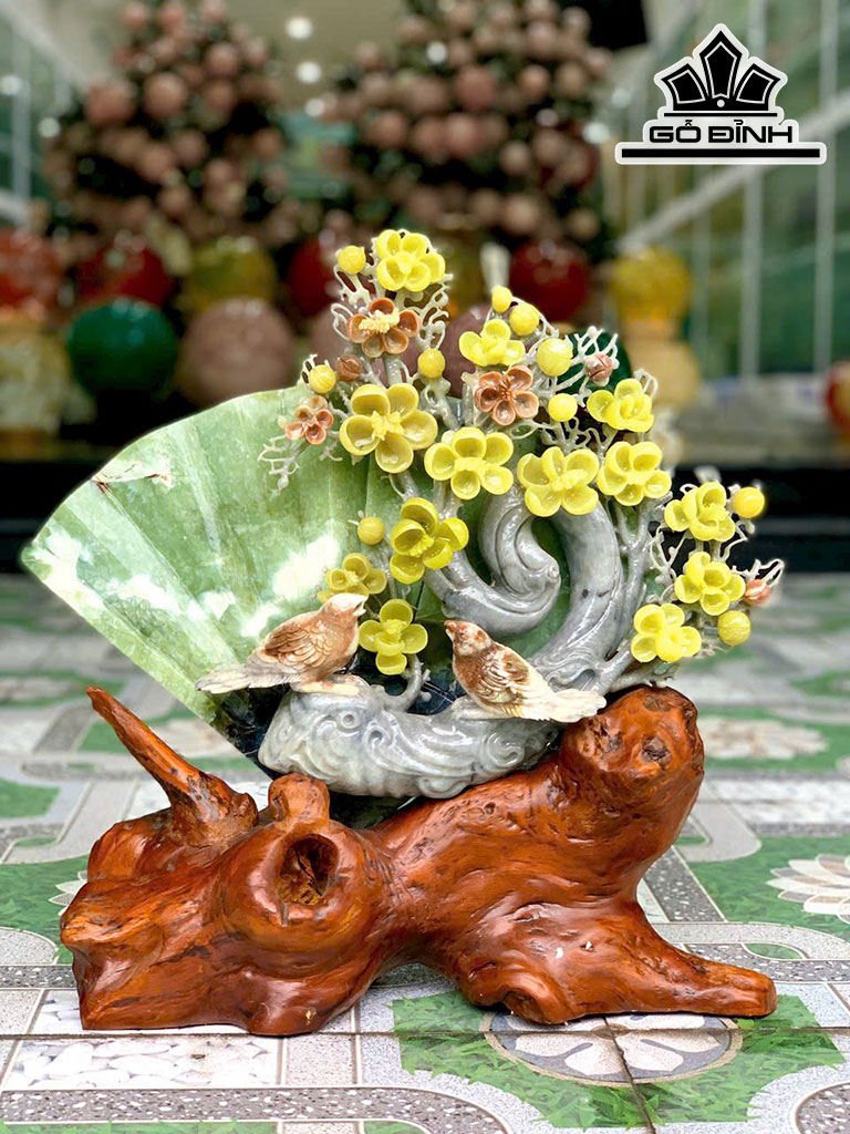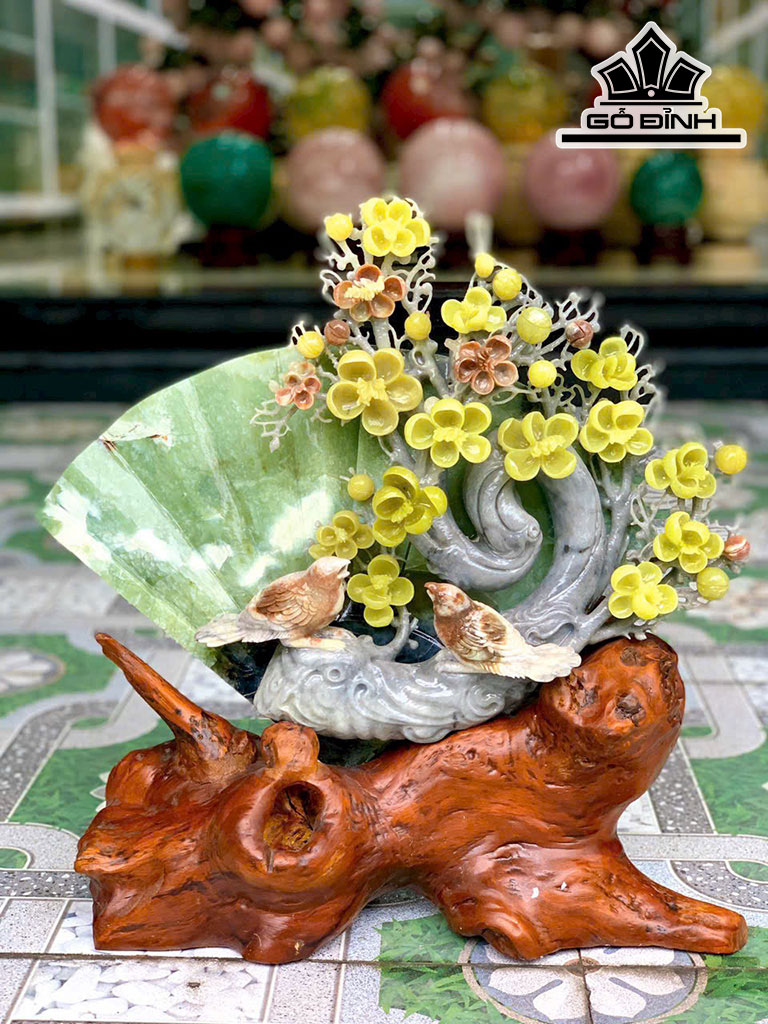 Bức Tranh Mai Vàng Và Chim Uyên Ương Đá Serpentine Cao 45 Ngang 45 (cm) 8kg