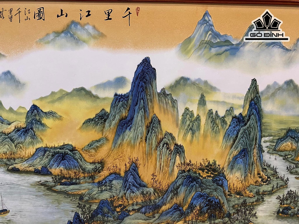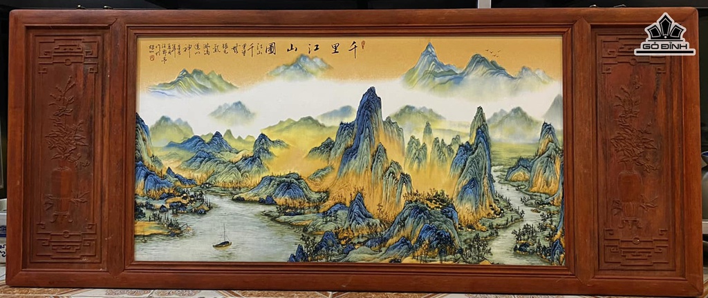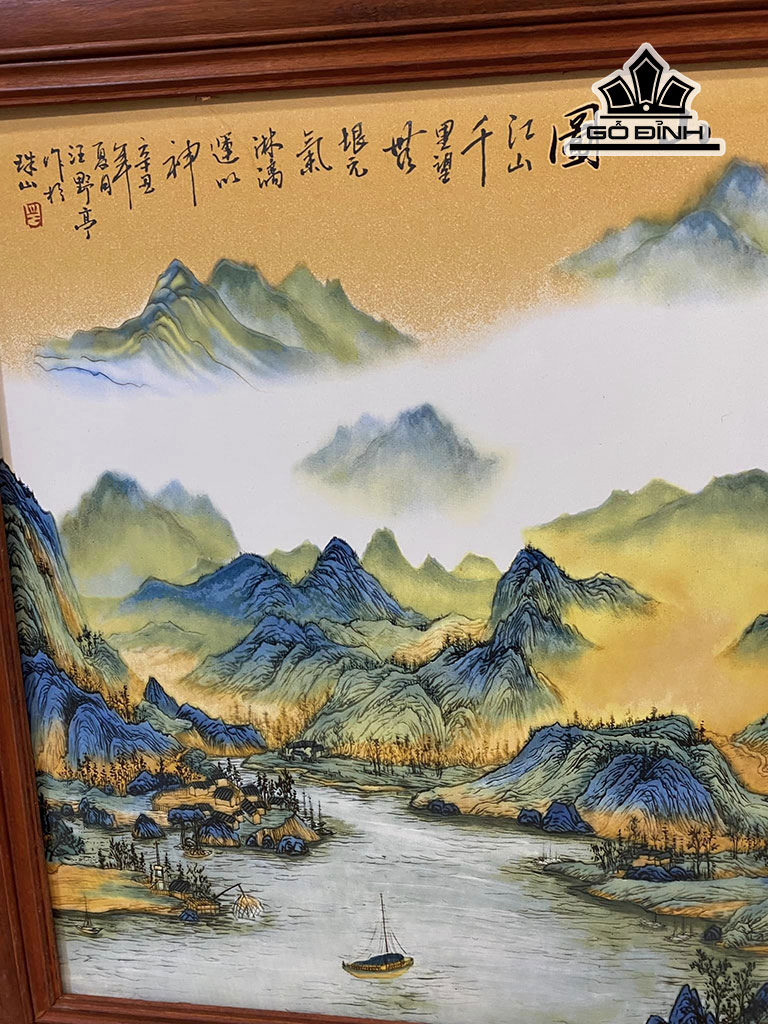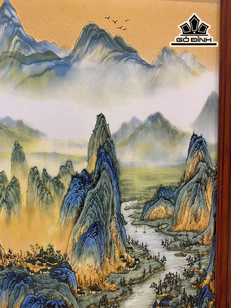 Bức Tranh Vẽ Sơn Thủy Gốm Tàu Cao 64 Ngang 155 (cm)